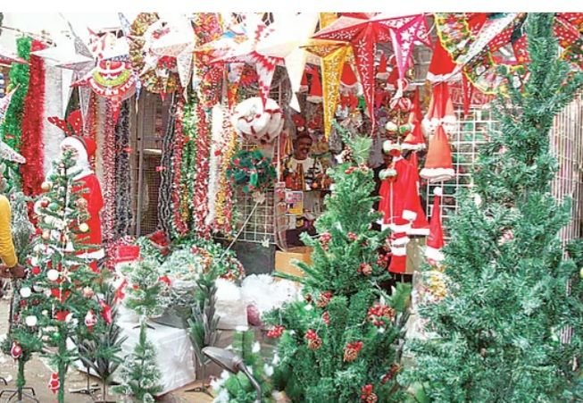 नाताळ जवळ आल्याने शहरांतील बाजारपेठा, दुकाने व मॉल्स ख्रिसमस ट्री, रंगीबेरंगी लाईट्स, बेल्स, स्टार्स, सांताच्या टोप्या, केक, सजावटीच्या वस्तू आदी साहित्यांनी सजल्या आहेत. यानिमित्त बाजारपेठेत खरेदीसाठी नागरिकांची लगबग सुरू असल्याचे दिसून येत आहे. सध्यास्थितीत बाजारपेठेत सजावटीच्या वस्तूंमध्ये विविध आकारांचे ख्रिसमस ट्री, जिंगल बेल्स, विद्युत माळा (लाईट्स), स्टार्स, टिनसेल, बॉल्स आणि स्टॉकिंग्ज, ख्रिस्त जन्माचे साहित्य, मुखवटे आणि सांताक्लॉजच्या टोप्या दाखल झाल्या आहेत. तसेच खाद्यपदार्थांमध्ये विविध फ्लेवर्सचे केक, विशेषतः प्लम केकचीमागणी जास्त असते. त्यामुळे हे केक उपलब्ध करून देण्यावर दुकानदारांकडून भर दिला जात आहे. विशेषकरून लहान मुलांसाठी बाजारात सांताक्लॉजसारखे ड्रेस, कानटोपी, ग्लोज, शूज, पोतडी बॅग्जही आल्या आहेत. बच्चे कंपनीत सांताक्लॉजचे खास आकर्षण असल्याने चॉकलेट गिफ्ट घेवून येणाऱ्या सांताक्लॉजचे आकर्षक मुखवटे, टोपी यांची खरेदी आतापासून होतांना दिसत आहे. काही ठिकाणी साहित्याच्या किमतीत वाढ झाली आहे, तरीही उत्साहामुळे खरेदी सुरू असल्याचे दिसून येत आहे.
