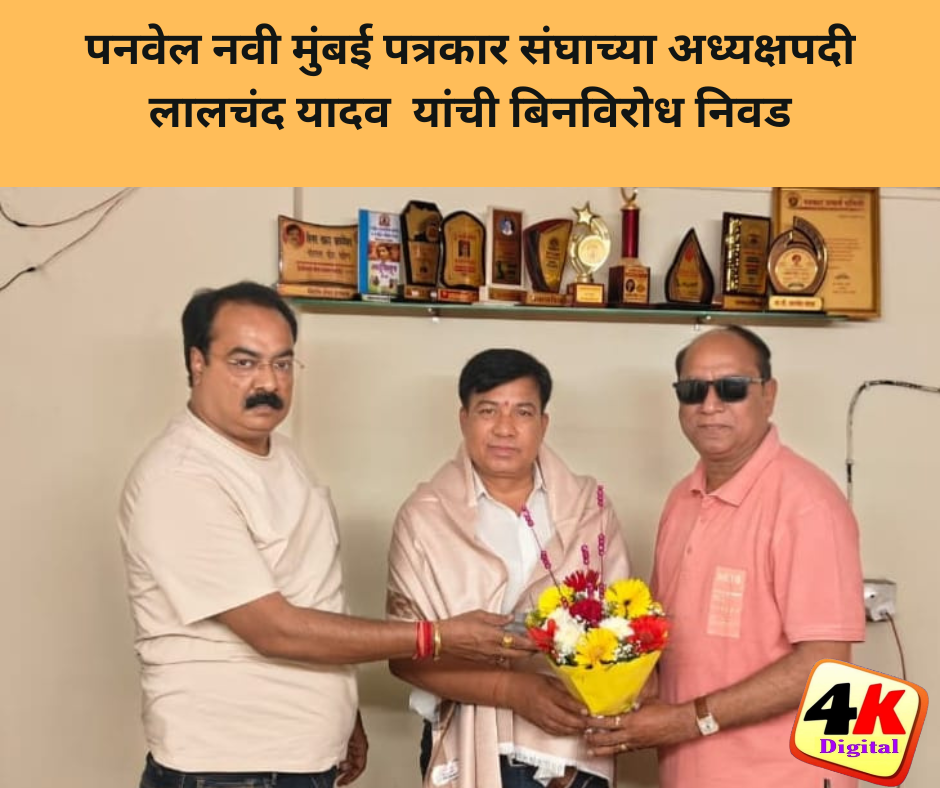 या निवडीबद्दल नवनिर्वाचित अध्यक्ष लालचंद यादव यांचे पनवेल तालुका पत्रकार विकास मंचचेअध्यक्ष राजेंद्र पाटील तसेच रायगड प्रेस क्लब जिल्हा कार्यकारणीचे सल्लागार संजय कदम व सर्व पत्रकार बांधवानी त्यांना शाल व पुष्पगुच्छ देऊन त्याचे अभिनंदन केले आहेत .