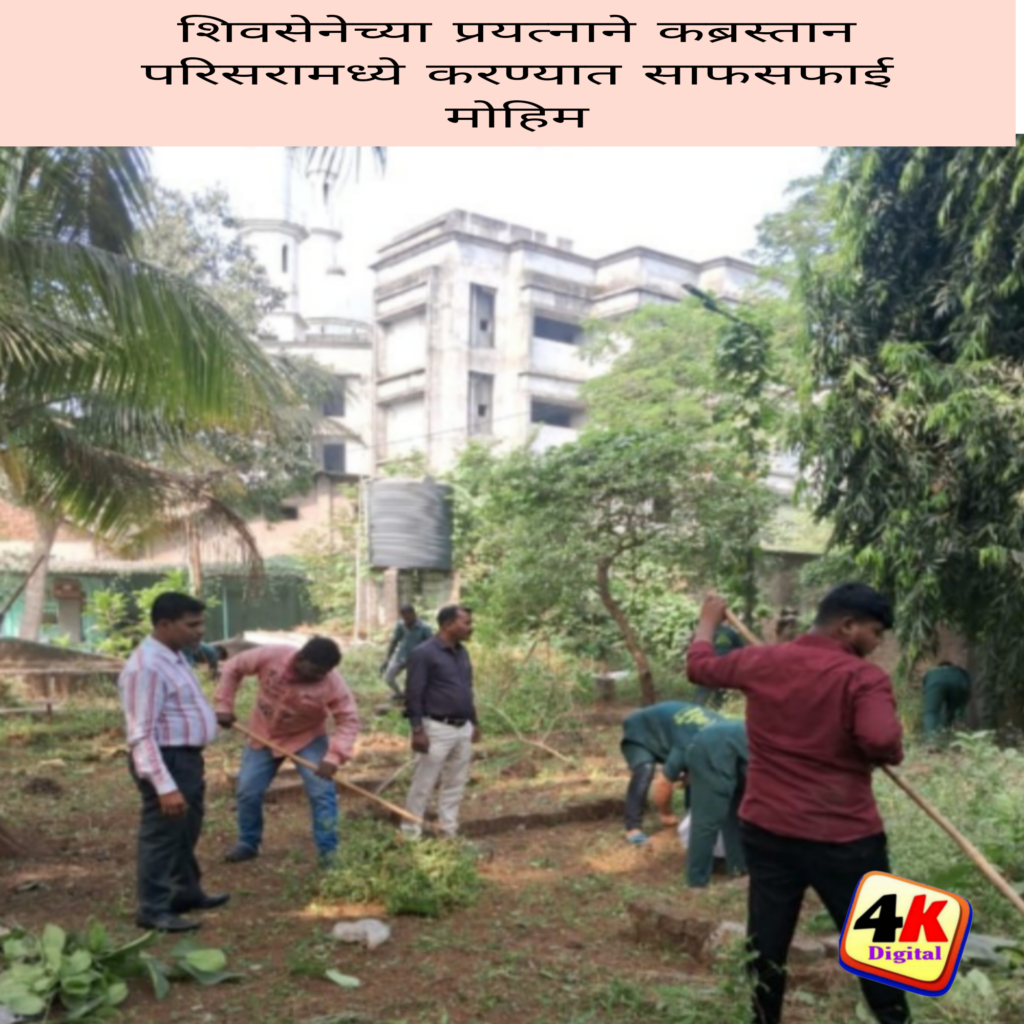 शिवसेना पनवेल शहर तर्फे गुलाब हुसेन बागवान (शिवसेना उप-विभाग प्रमुख) यांच्या प्रयत्नाने आज मोमीन पाडा मज्जिद च्या बाजूला असलेले कब्रस्तान हे काही दिवसांपासून अस्वच्छ म्हणजेच त्या ठिकाणी मोठ्या प्रमाणात गवत आले होते आणि साफसफाई झाली नव्हती.