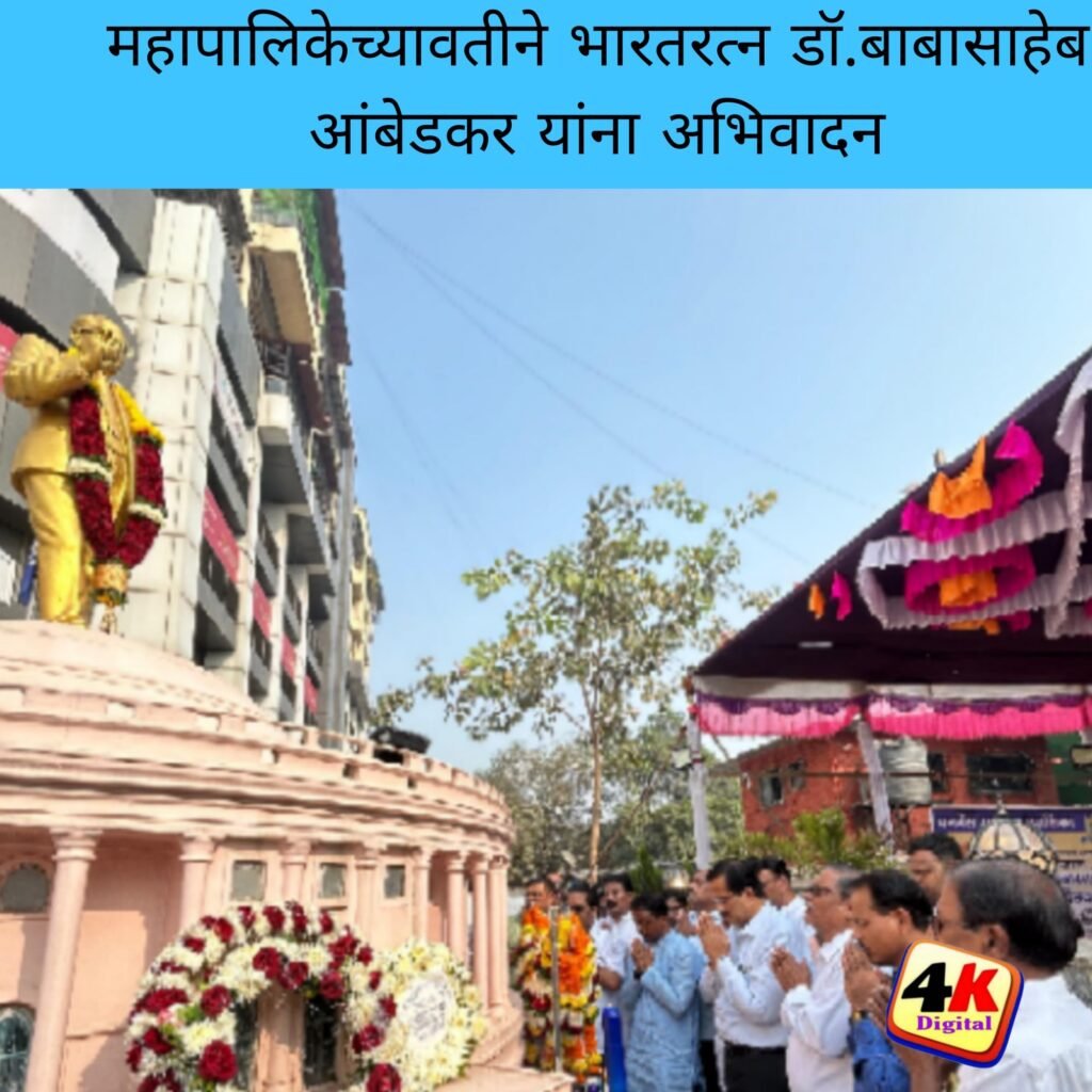 पनवेल,दि.6 : ( 4kNews)पनवेल महानगरपालिकेच्यावतीने आज भारतरत्न डॉ.बाबासाहेबआंबेडकर यांच्या 68 व्या महापरिनिर्वाणदिनानिमित्ताने पनवेलमधील भारतरत्न डॉ.बाबासाहेब आंबेडकर पुतळ्यास पुष्पहार अर्पण करून अभिवादन करण्यात आले.