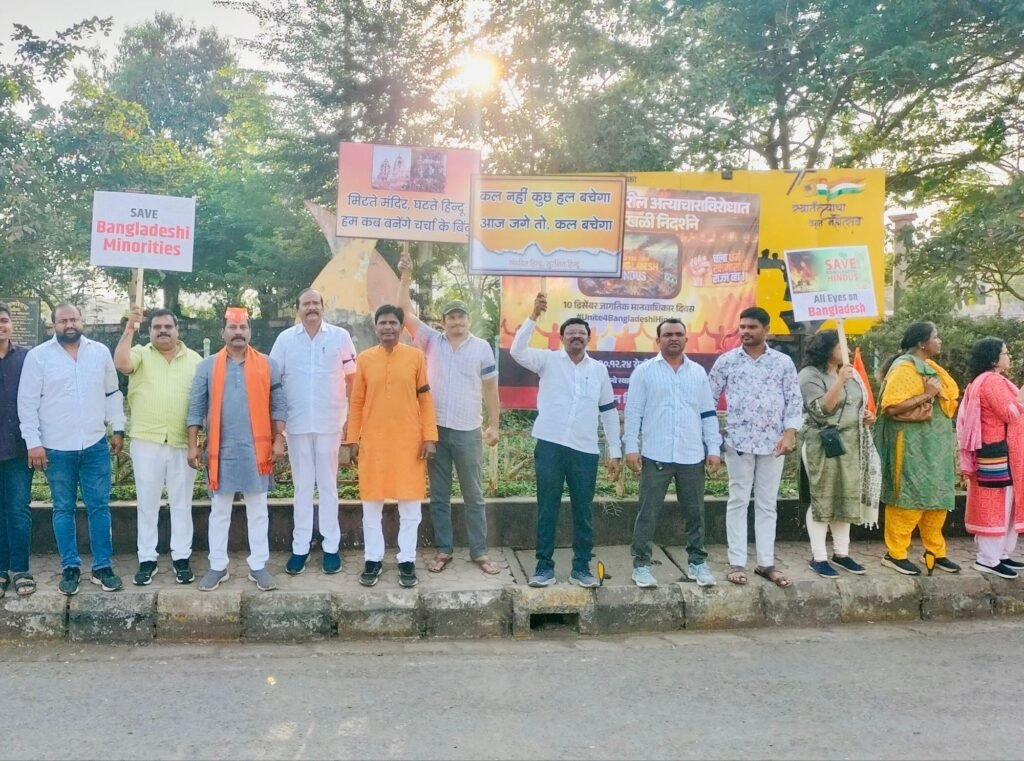 मूकदर्शक बनल्या आहेत. त्याच वेळी बांगलादेशमधील हिंदूंनी त्यांच्यावरील अन्याय, अत्याचारांनंतर आवाज उठवण्याचा प्रयत्न केला. मात्र तिथल्या सरकारने त्यांचा आवाज दाबून ठेवला आहे. तिथल्या हिंदूंनी आंदोलन करण्याचा प्रयत्न केला मात्र बांगलादेशी सरकारने हिंदूंची आंदोलनं चिरडली. इस्कॉनचे हिंदू धर्मगुरु श्री चिन्मय दास यांना बेकायदेशीरपणे अटक करण्यात आली. त्यांच्या वकीलांची हत्या करण्यात आली. त्यांच्या समर्थकांना भारताचा व्हिसा असताना देखील भारतात येण्यास मनाई करण्यात आली. या सर्व अत्याचारांची भारतातील हिंदू समाजास चिंता वाटत आहे. त्यामुळे तातडीने अत्याचार थांबण्यासाठी सकल हिंदू समाजाच्यावतीने मानवी साखळीतून जोरदार मागणी करण्यात आली. त्याचबरोबर अत्याचाराविरोधात तीव्र शब्दात निषेध व्यक्त करण्यात आला.