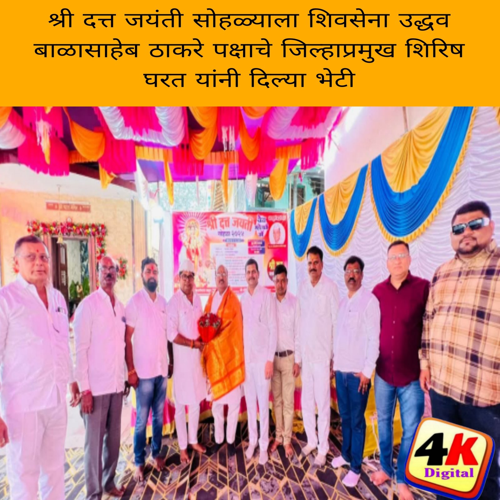 पनवेल, दि.14 (4kNews) ः आज श्री दत्त जयंती सोहळा पनवेल तालुक्यात मोठ्या धार्मिकतेने तसेच विविध कार्यक्रमाद्वारे संपन्न होत आहे. या सोहळ्याला शिवसेना (उद्धव बाळासाहेब ठाकरे) पक्षाचे जिल्हाप्रमुख शिरिष घरत यांनी भेटी देवून आशिर्वाद घेतले आहे.