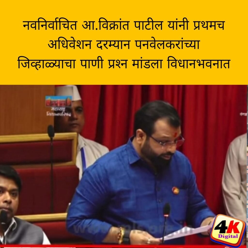 पनवेल, दि.17 (4kNews) ः आमदार म्हणून संधी मिळाल्या नंतर आज प्रथमच अधिवेशना दरम्यान विधान भवनात नवनिर्वाचित आ.विक्रांत बाळासाहेब पाटील यांनी पनवेलकरांच्या जिव्हाळ्याचा पाणी प्रश्न विधानभवनात मांडला आहे.