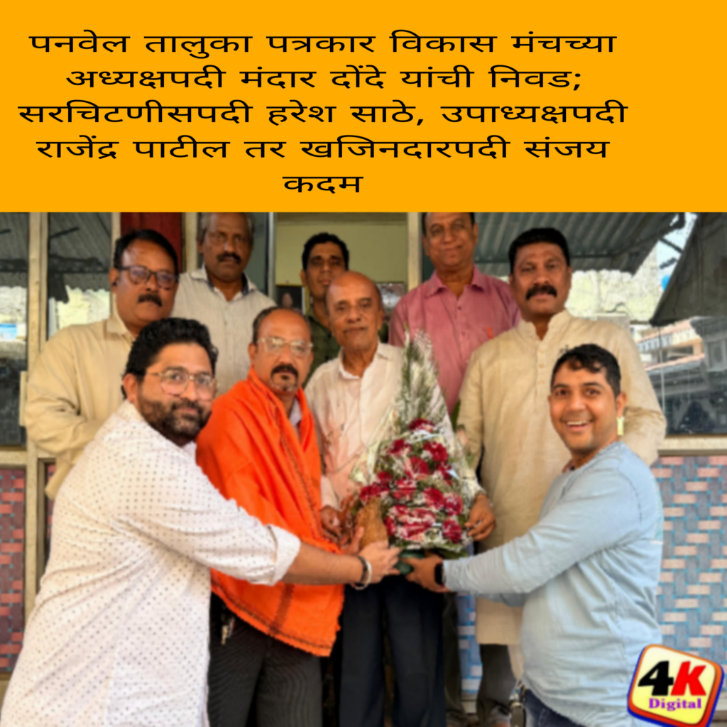 पनवेल(4kNews) पत्रकारिता क्षेत्रासोबत सातत्याने सामाजिक व शैक्षणिक उपक्रम राबविणाऱ्या पनवेल तालुका विकास मंचच्या अध्यक्षपदी मंदार दोंदे यांची सर्वानुमते निवड करण्यात आली आहे.