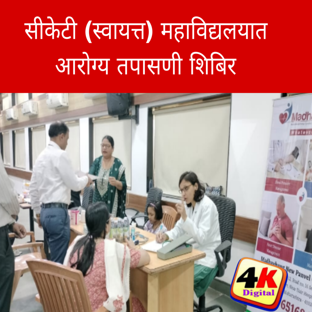पनवेल 4kNews जनार्दन भगत शिक्षण प्रसारक संस्थेच्या चांगु काना ठाकूर आर्टस, कॉमर्स आणि सायन्स कॉलेज खांदा कॉलनी नवीन पनवेल (स्वायत्त) येथे महाविद्यालयाच्या कर्मचारी अकादमी आणि कल्याण समिती व माधवबाग आणि प्रजापती ग्रुप फौंडेशन यांच्या समन्वयाने आज (दि. २१) महाविद्यालयीन शिक्षक आणि शिक्षकेतर कर्मचाऱ्यांसाठी आरोग्य तपासणी शिबिराचे आयोजन करण्यात आले होते. या शिबिराचे उद्घाटन महाविद्यालयाचे प्राचार्य प्रो. डॉ. एस. के. पाटील यांच्या हस्ते करण्यात आले