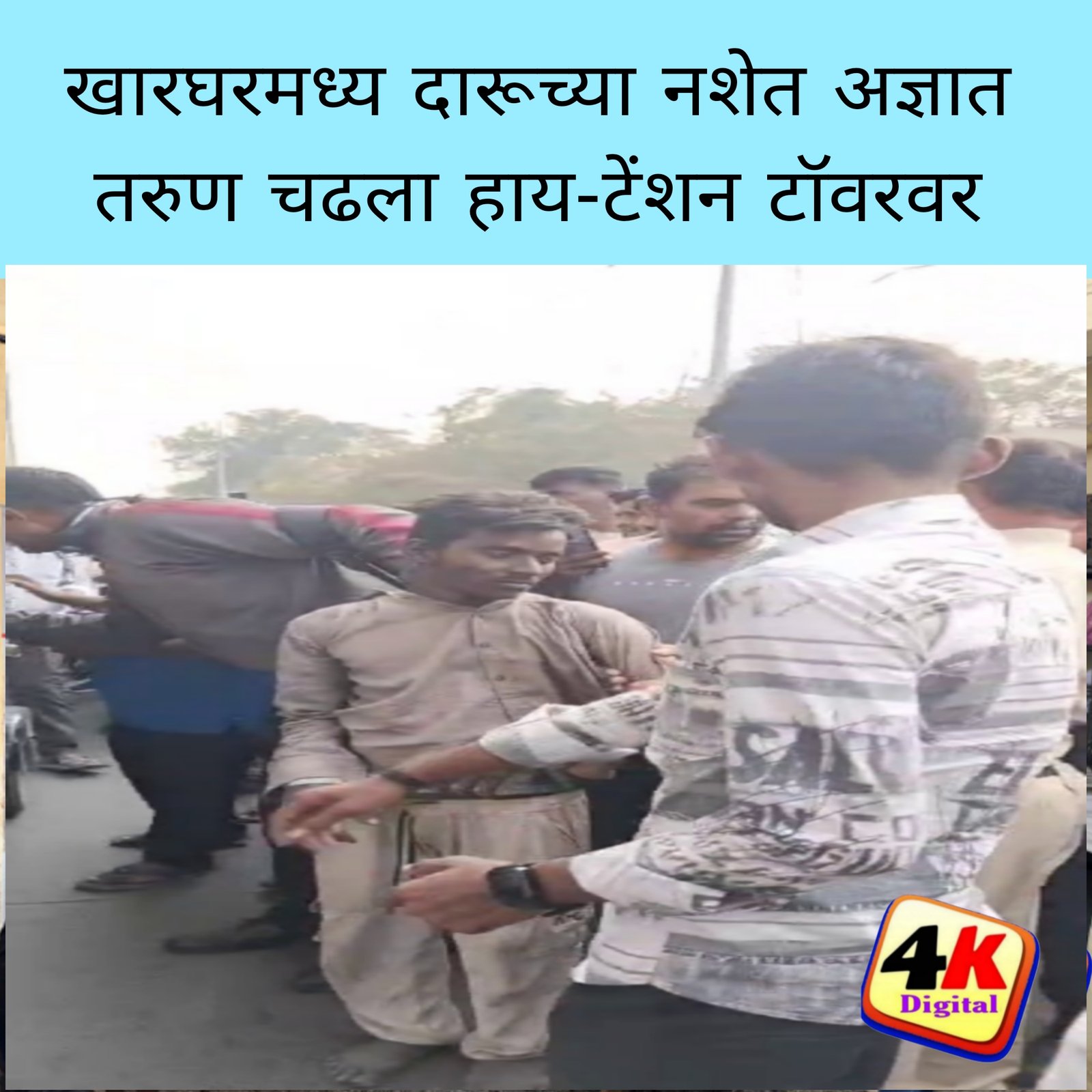 पनवेल, दि.24 (4kNews) ः प्रसिद्ध शोले चित्रपटात जसा धर्मेंद्र म्हणजेच वीरू बसंतीसाठी दारूच्या नशेत उंच पाण्याच्या टाकीवर चढतो तसाच काहीसा प्रसंग खारघर येथे घडला असून सदर तरुण दारुच्या नशेत महावितरणाच्या हाय-टेंन्शन टॉवरवर चढला.