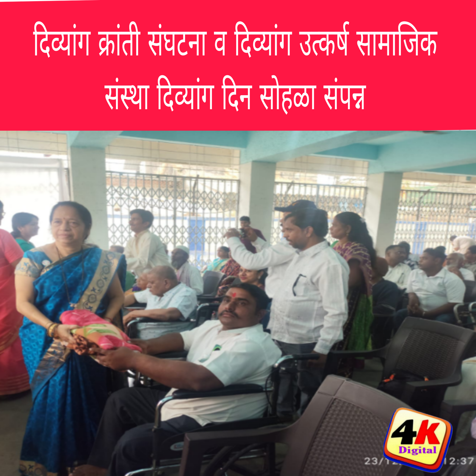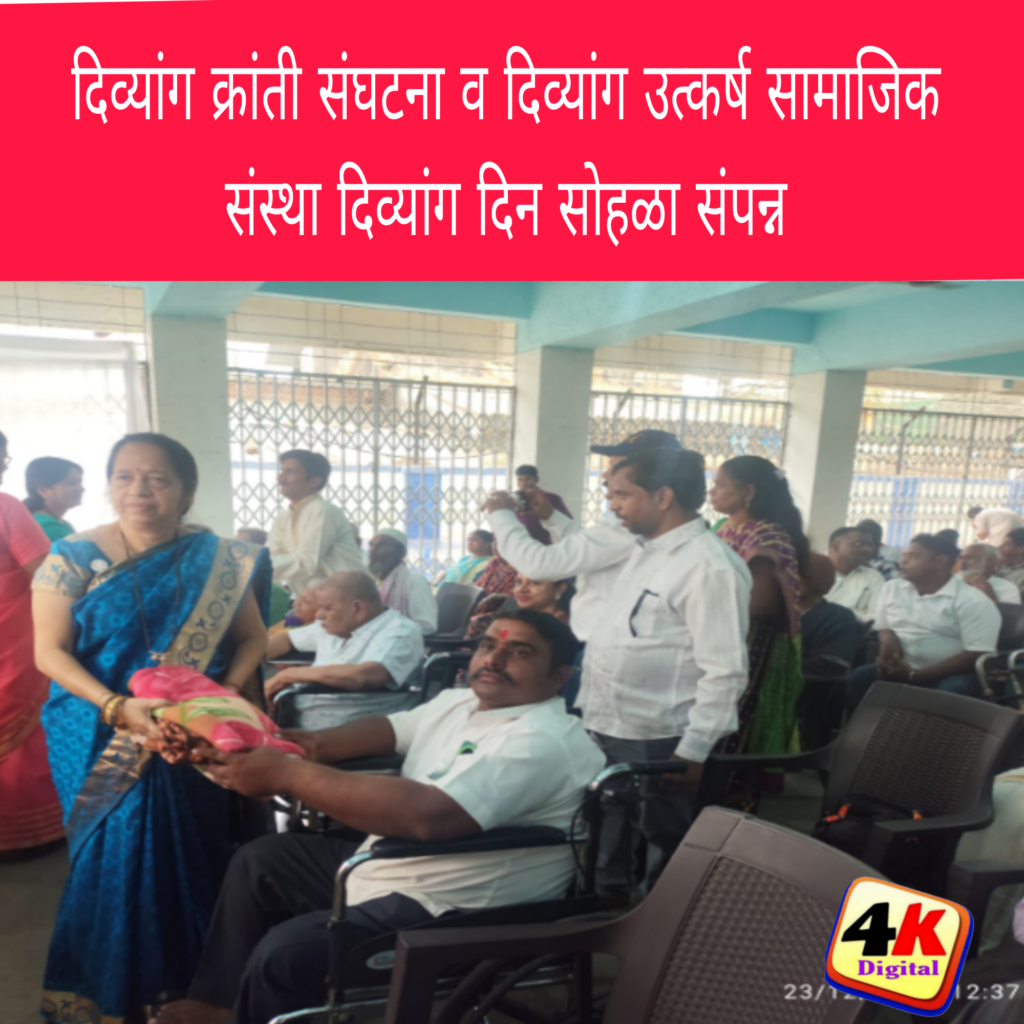 पनवेल, दि.23 (4kNews) ः दिव्यांग क्रांती संघटना व दिव्यांग उत्कर्ष सामाजिक संस्थेतर्फे आज जागतिक दिव्यांग दिनाचे औचित्य साधून पनवेल शहरातील पनवेल महानगरपालिका, महामानव डॉ.बाबासाहेब आंबेडकर भवन येथे दिव्यांग दिन सोहळा मोठ्या उत्साहात व विविध कार्यक्रमाद्वारे संपन्न झाला.