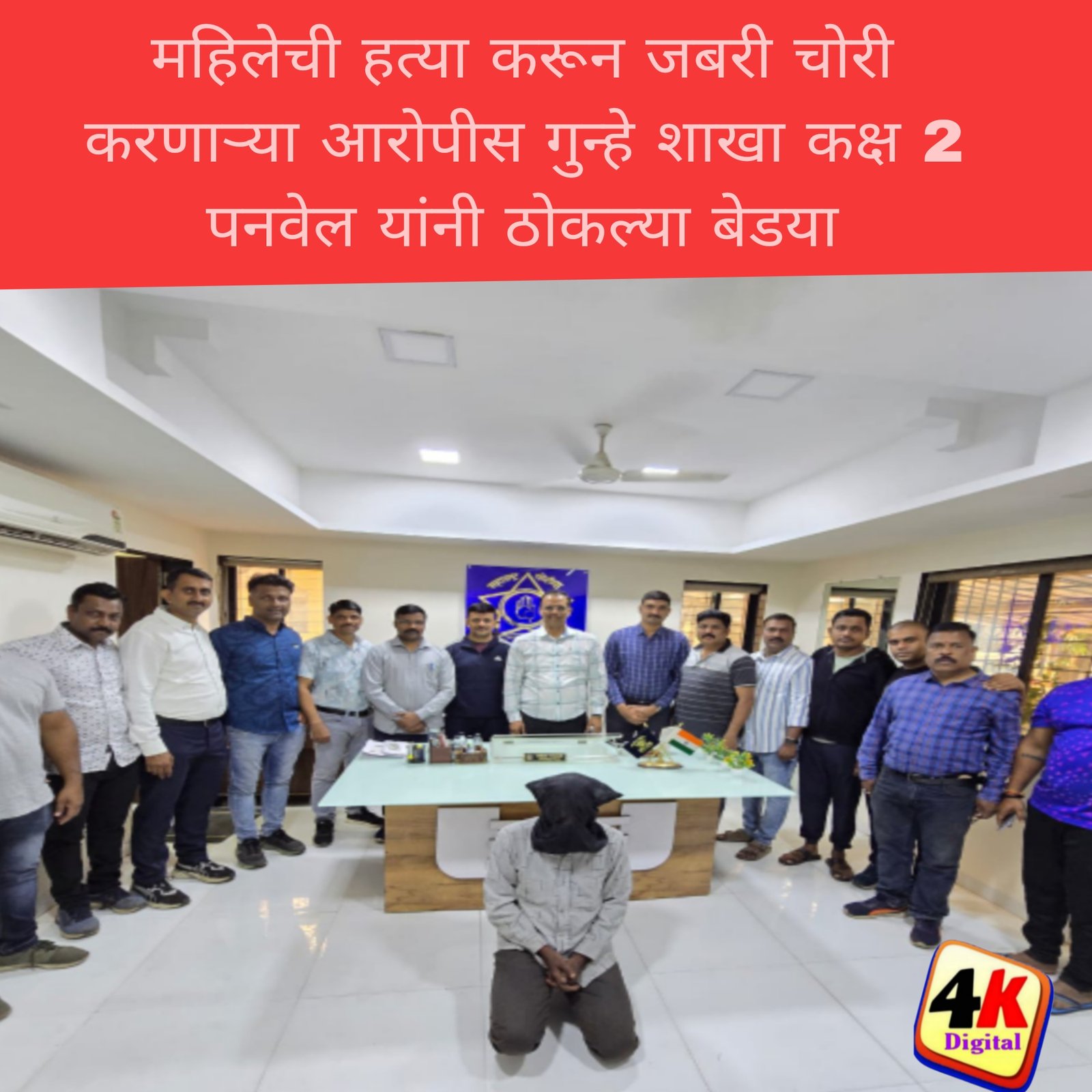 पनवेल, दि.23 (4kNews) ः एका महिलेची हत्या करून जबरी चोरी करणार्या आरोपीस अडीच महिन्यानंतर गुन्हे शाखा कक्ष 2 पनवेलच्या पथकाने अथक मेहनत घेवून ताब्यात घेतल्याने या खुनाची उकल झाली आहे. सदर घटना ही पनवेल तालुक्यातील वलप गावामध्ये घडली होती.