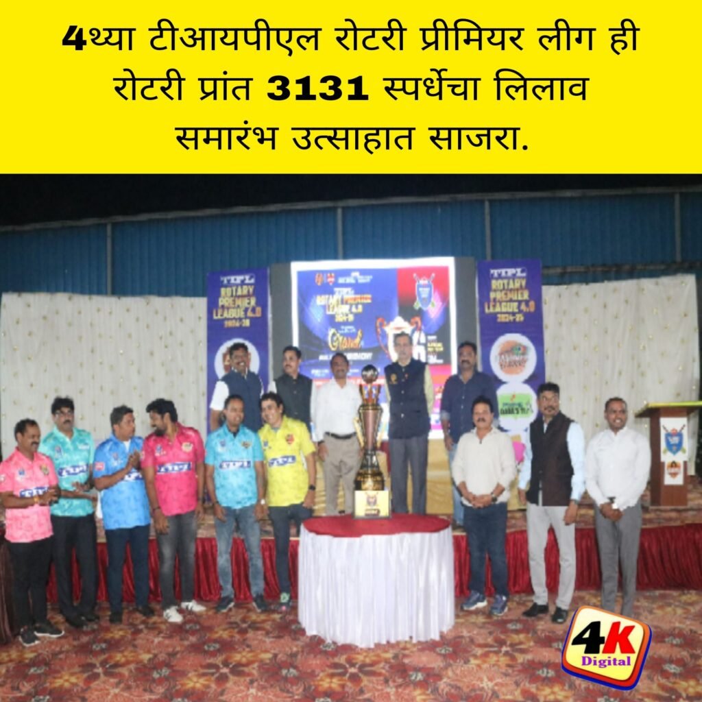 पनवेल, दि.26 (4kNews) ः टीआयपीएल रोटरी प्रीमियर लीग ही रोटरी प्रांत 3131 मधील क्रिकेट प्रेमी रोटरी सदस्यांसाठी पनवेल परिसरात आयोजित करण्यात येणारी क्रिकेट स्पर्धा असून या वर्षी हे 4थे वर्ष आहे. ही स्पर्धा 10,11,12 जानेवारी व 17,18,19 जानेवारी 2025 या दिवशी खेळवली जाणार आहे. रायगड रोटरी वरियार्स हे या स्पर्धेचे आयोजक असून या स्पर्धेत रोटरी 3131प्रांतातील 40 वर्ष्यावरील 78 रोटरी सदस्य खेळाडू म्हणून सहभागी झाले आहेत ते 78 सदस्य सहा विविध संघात प्रत्येकी 13 खेळाडू खझङ धर्तीवर लिलाव ( पैश्यांचा ऐवजी पॉईंट्स) पद्धतीने निवडले जातात.