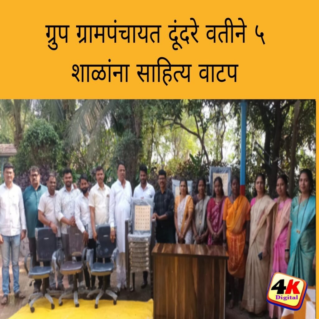 ग्रामपंचायत मीटिंग नंतर रिटघर येथे दुंदरे हद्दीतील रिटघर, दूंदरे, दूंदरेपाडा, चिंचवली, शिवनसई, जिल्हा परिषद शाळेच्या शिक्षकांना शाळेला आवश्यक असणारे साहित्य खुर्च्या, टेबल कपाट सरपंच उपसरपंच सदस्य कमिटीच्या उपस्थित शिक्षक दूंदरे ३ टेबल ५ खुर्च्या १ कपाट,१ ग्रंथालय तर रिटघर शाळेला ३० खुर्च्या, १ कपाट, १ ग्रंथालय कपाट, दूंदरे पाडा, चिंचवली,शिवणसई या प्रत्येक शाळेला शाळेला २ टेबल ५ खुर्च्या १ग्रंथालय कपाट, शाळांना सुपूर्द केले.