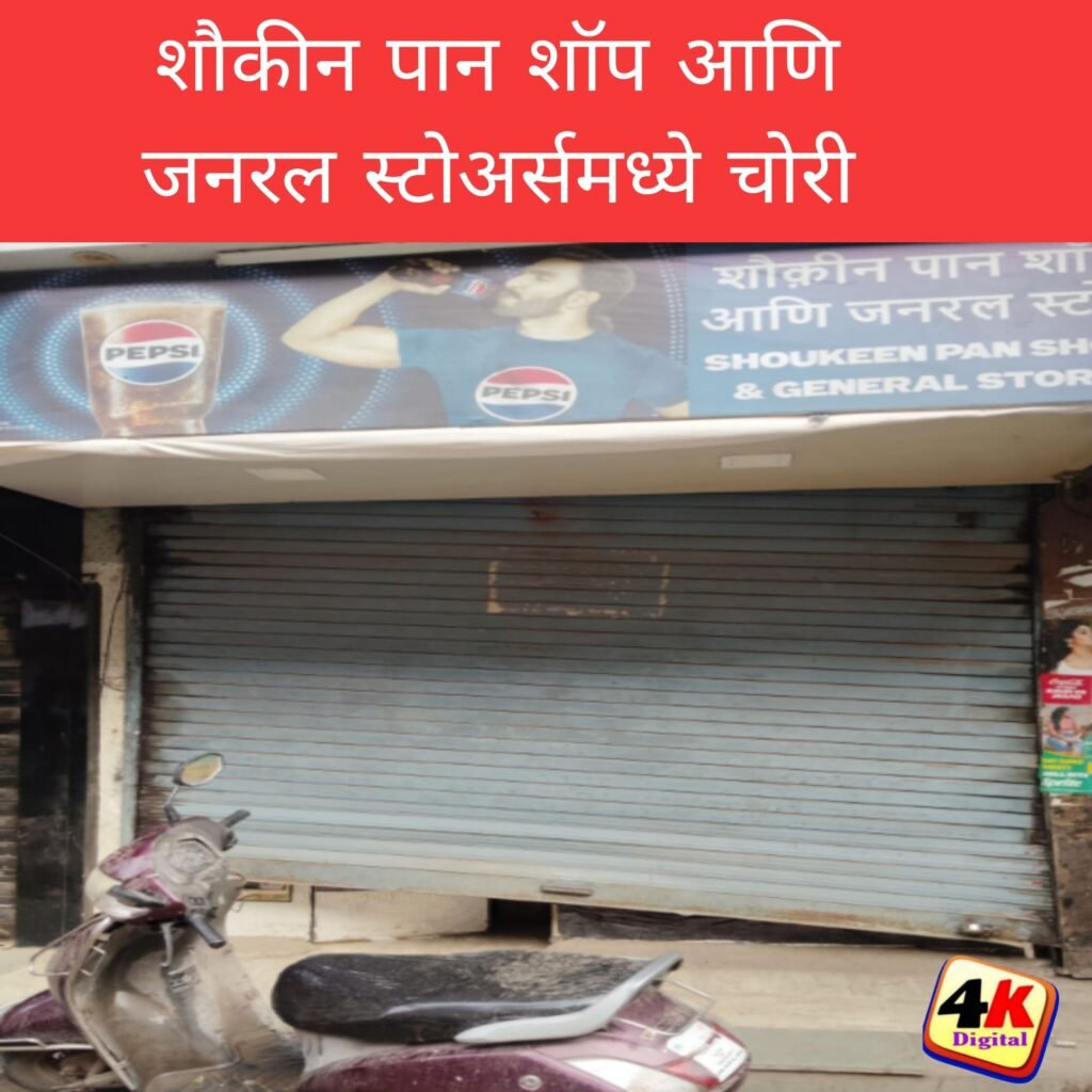 पनवेल, दि.28 (4kNews) ः पनवेल शहरातील परदेशी आळी येथे असणार्या शौकीन पान शॉप आणि जनरल स्टोअर्समध्ये चोरी झाल्याची घटना घडली आहे