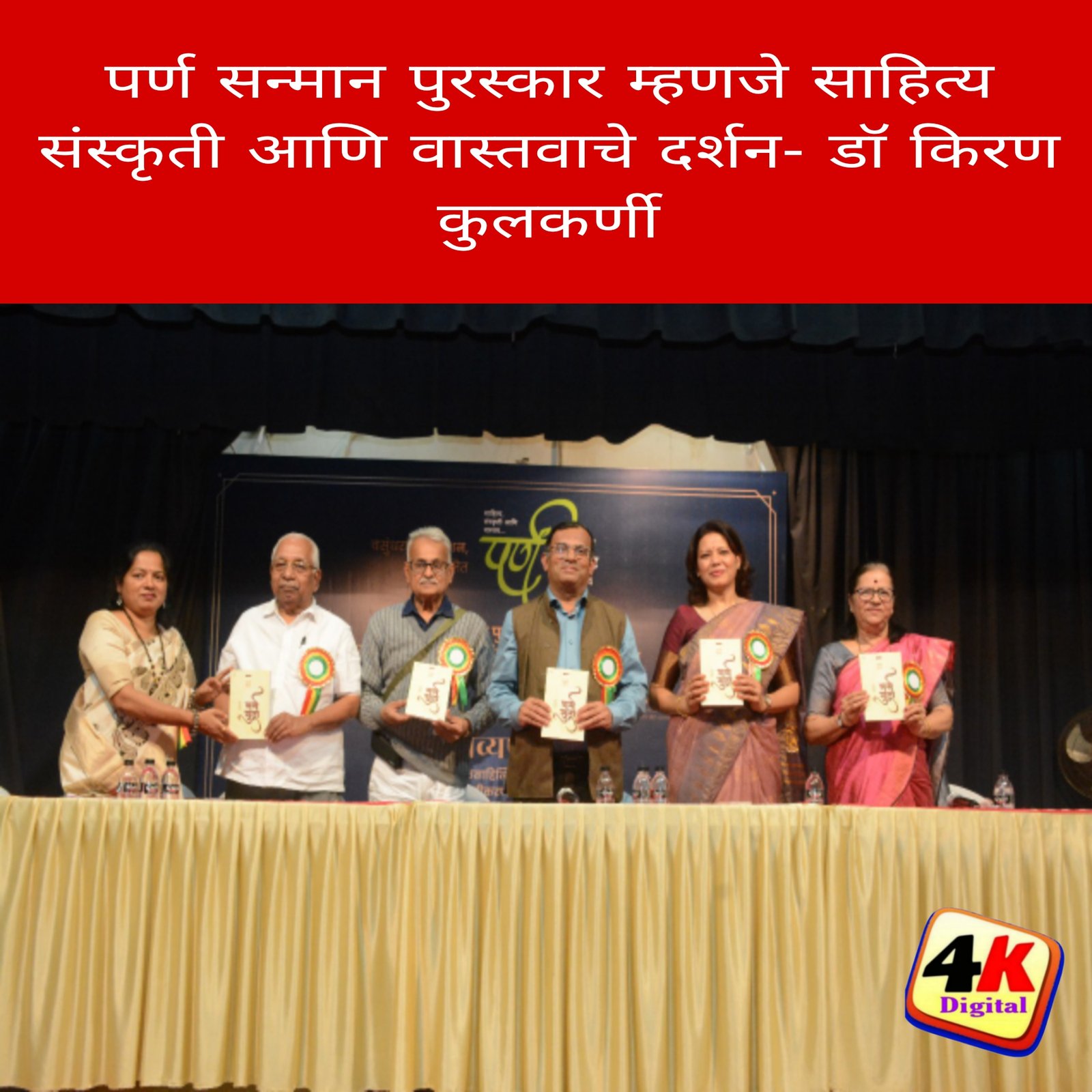 साहित्य संस्कृती आणि वास्तव या ब्रीदवाक्यानुसार कार्यरत साहित्यिकाला दरवर्षी पर्ण सन्मान पुरस्कार देण्यात येणार आहे .डॉ . किरण कुलकर्णी यांनी भाषेचा दर्जा उंचावण्यासाठी विविध पातळ्यांवर दर्जेदार असे प्रयत्न व्हायला हवेत.