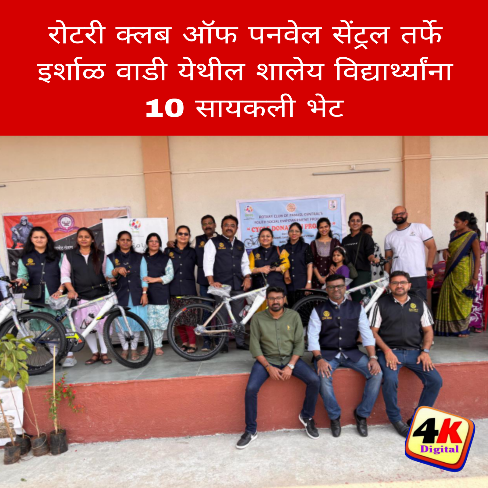 इर्शाळवाडी येथे जावून गरजवंत विद्यार्थ्यांना ज्यांना शिक्षणासाठी दररोज पायपीट करून शाळेत जावे लागते व पुन्हा घरी परतावे लागते अशा विद्यार्थ्यांना या उपक्रमाच्या माध्यमातून अत्याधुनिक अशा 10 सायकली भेट देण्यात आल्या. यावेळी उपस्थित विद्यार्थ्यांनी रोटरी क्लब ऑफ पनवेल सेंट्रलचे आभार मानले आहेत.