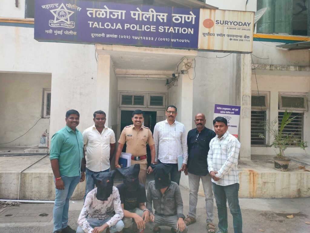 त्यांना मोहम्मद जुबेर खान (23), ओवेस झुबेर शेख (19), साजिद खाजा शेख (19) यांना तळोजा गावातून ताब्यात घेऊन त्यांचेकडे गुह्याचे अनुषंगाने तपास करता त्यानी सदरचा गुन्हा केल्याची कबुली दिल्याने त्याना अटक करण्यात आली आहे. या आरोपींच्या अटकेमुळे अजूनही काही गुन्हे उघडकीस येण्याची शक्यता वर्तविण्यात येत आहे.
