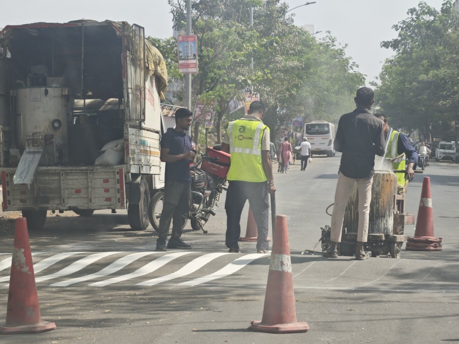 पनवेल दि.२७(वार्ताहर): करंजाडे वसाहतीमध्ये समाजसेवक आयु कुणाल लोंढे यांच्या प्रयत्न आणि पाठपुराव्याने करंजाडे वसाहतीमध्ये गतिरोधक बंधने व झेब्रा क्रॉसिंग पट्टे मारण्याचे काम सुरु झाले आहे.