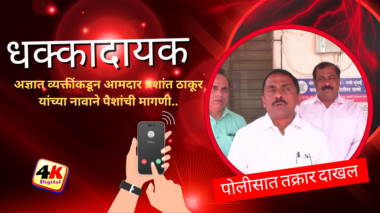पनवेलचे आमदार आणि भाजपचे ज्येष्ठ नेते प्रशांत ठाकूर यांच्या नावाने अज्ञात व्यक्तींनी नागरिकांना फोन करून पैशांची मागणी केल्याची गंभीर आणि धक्कादायक घटना समोर आली आहे. या प्रकारामुळे नागरिकांमध्ये संभ्रम व चिंता निर्माण झाली असून, आमदार ठाकूर यांनी याबाबत पनवेल शहर पोलीस ठाण्यात तातडीने तक्रार दाखल केली आहे.