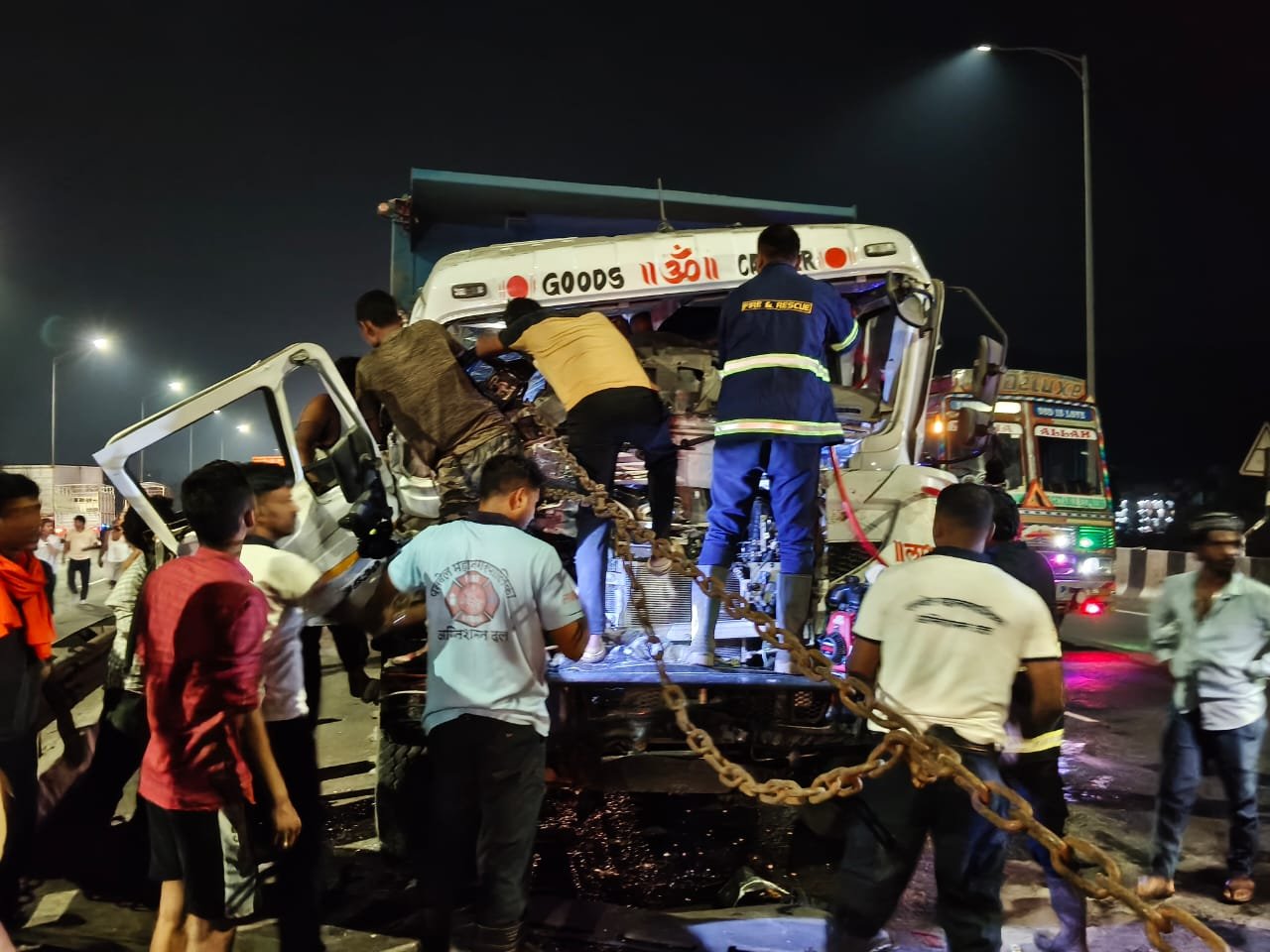 परंतु उभ्या ट्रेलरच्या आतमध्ये डंपर घुसल्याने चालक महेश महातो हा अडकला होता व तो गंभीररित्या जखमी झाला होता. तेथील पोलिसांनी त्वरित पनवेल अग्नीशमन दलाच्या पथकाला घटनास्थळी पाचारण केले व अथक प्रयत्नाने महेश महातोला बाहेर काढून त्याला उपचारार्थ रुग्णालयात दाखल करण्यात आले आहे. या अपघाताची नोंद पनवेल शहर पोलीस ठाण्यात करण्यात आली आहे.