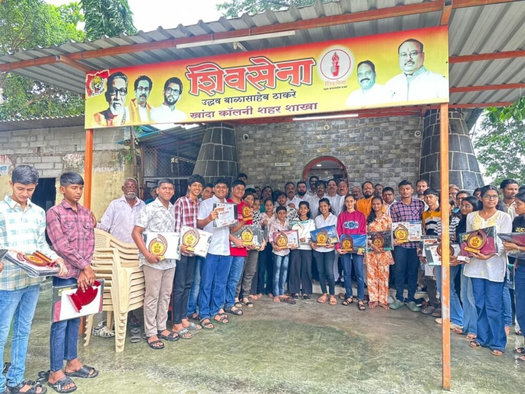 पनवेल दि. २८ ( वार्ताहर ) : शिवसेना पक्षप्रमुख उद्धव बाळासाहेब ठाकरे यांच्या वाढदिवसानिमित्त एक सामाजिक उपक्रम म्हणून शिवसेना (उद्धव बाळासाहेब ठाकरे) शहर प्रमुख सदानंद शिर्के यांच्या संयुक्त विद्यमाने खांदा कॉलनी शहर शाखा येथे १० वी व १२ वी परिक्षेत उत्तीर्ण झालेल्या विद्यार्थ्यांचा गुणगौरव सोहळा आयोजित करण्यात आला. यावेळी शिवसेना जिल्हाप्रमुख रायगड शिरीष घरत यांच्या हस्ते प्रशस्तीपत्र व पुरस्कार प्रदान करण्यात आले.