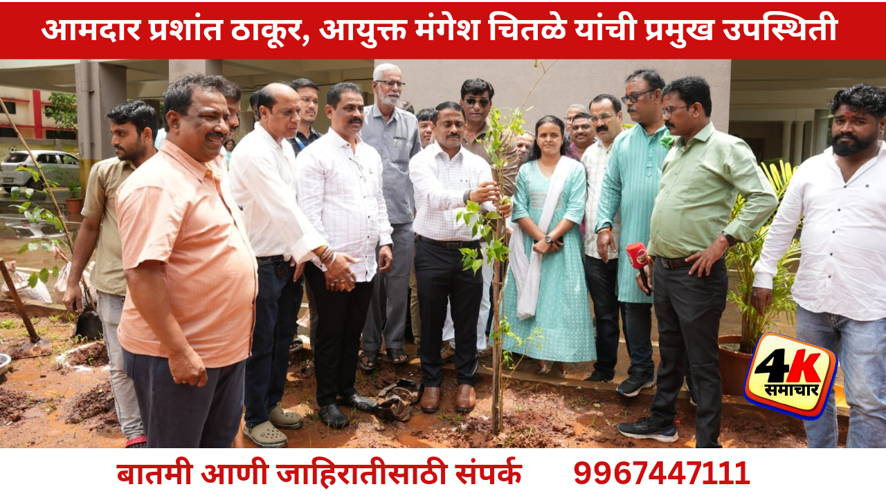 पनवेल दि. 1 4k समाचार (प्रतिनिधी) वाढणारं शहरीकरण आणि होणारं प्रदूषण याला रोखण्यासाठी वृक्षारोपण करणं अतिशय गरजेचं आहे. याच उद्देशाने पनवेल तालुका प्रेस क्लबच्या माध्यमातून नुकतेच लोकनेते दि. बा. पाटील विद्यालय, पनवेल येथे आमदार प्रशांत ठाकूर आणि पनवेल महापालिका आयुक्त मंगेश चितळे यांच्या प्रमुख उपस्थितीत वृक्षारोपणाच्या कार्यक्रमाचे आयोजन करण्यात आलं होतं.