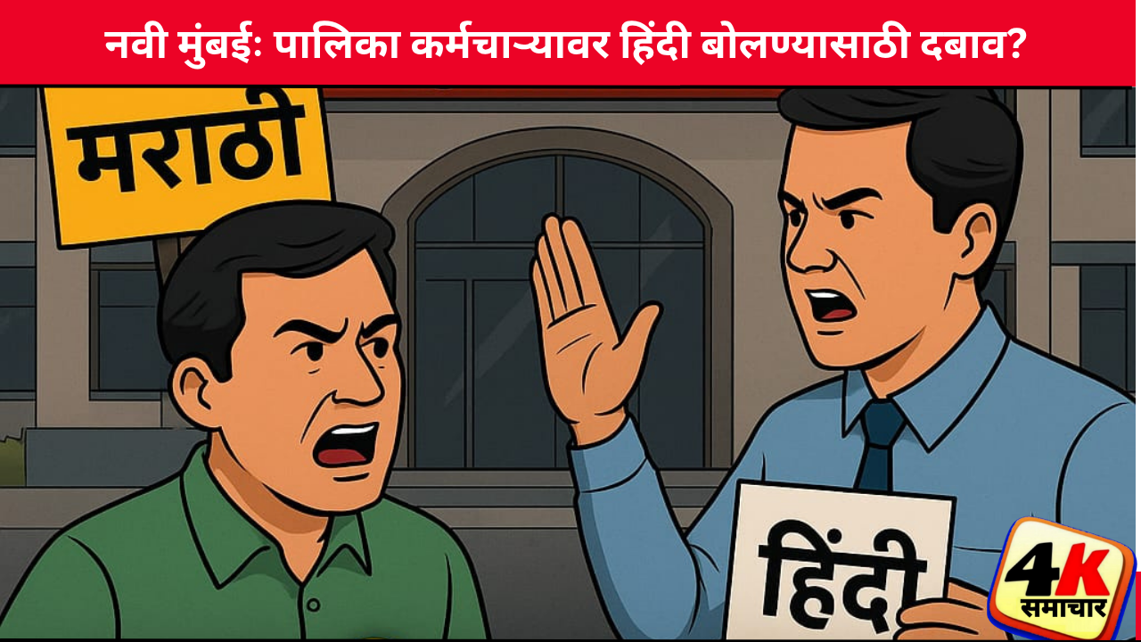 नवी मुंबई महापालिकेच्या नेरूळ येथील विभाग कार्यालयात पालिका कर्मचाऱ्यावर हिंदी बोलण्यासाठी एका नागरिकाने अरेरावी केल्याचा व्हिडिओ व्हायरल झाला आहे. कर्मचाऱ्याने संबंधित नागरिकाला मराठीत बोलावे अशी विनंती केली.