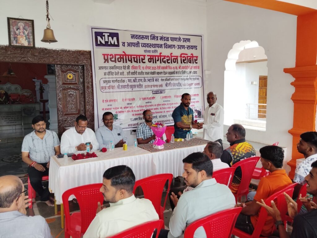उरण दि १२(विठ्ठल ममताबादे )नवतरुण मित्र मंडळातर्फे उरण तालुक्यातील श्री अक्कादेवी मंदिर पाणजे येथे प्रथमोपचार मार्गदर्शन शिबिर आयोजित करण्यात आले.सदर प्रशिक्षणात आपत्ती व्यवस्थापन विभाग उरण रायगड यांचे तर्फे एम. के. म्हात्रे यांनी अतिशय मोलाचे मार्गदर्शन करून पाण्यात बुडलेले व्यक्ती, अपघात ग्रस्त व्यक्ती, भाजलेले व्यक्ती, हार्ट अटॅक आलेल्या व्यक्ती, विजेचा धक्का लागलेल्या व्यक्ती तसेच सर्पदंश झालेले व्यक्ती यांच्यावर डॉक्टरी इलाज होईपर्यंत आपण प्रथमोपचार कशा पद्धतीने करू शकतो याचे खूप मोलाचे मार्गदर्शन केले.