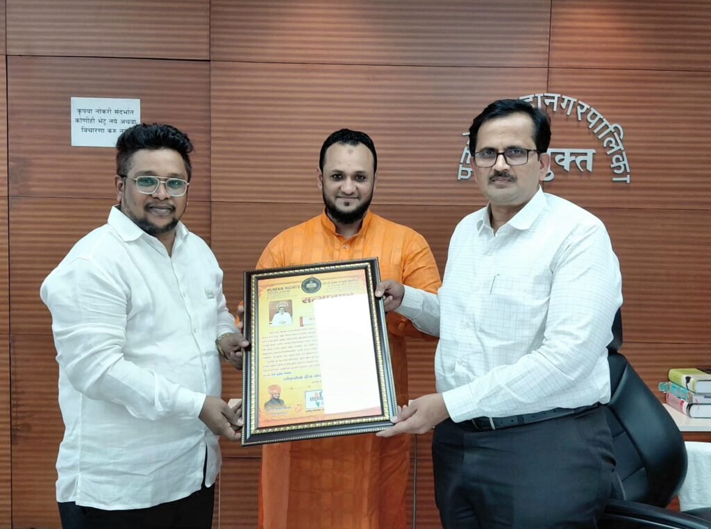 पनवेल शहराला ‘स्मार्ट सिटी’ बनवण्याच्या दिशेने सुरू असलेल्या प्रयत्नांमध्ये आयुक्त मंगेश चितळे यांच्या नेतृत्वाची दखल घेत मानवी हक्क संरक्षण फेडरेशनने त्यांचा विशेष गौरव केला आहे. सोमवार, ११ ऑगस्ट रोजी फेडरेशनच्या पदाधिकाऱ्यांनी आयुक्तांची भेट घेऊन त्यांना सन्मानपत्र प्रदान केले.