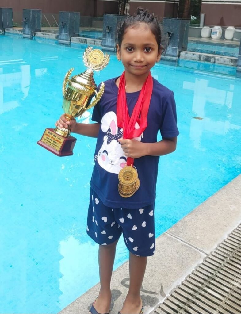 पनवेल:पनवेल येथील रुद्राणी परेश पाटील या आठ वर्षाच्या चिमुकलीने दि.15 रोजी उरण येथे आयोजित जिल्हा स्तरित जलतरण आमदार चषकात तब्बल 3 सुवर्ण पदक पटकावले आहेत. रुद्राणीने 50 मीटर फ्रीस्टाइल, बॅक स्ट्रोक, व बटरफ्लाय या तीन प्रकारांमध्ये प्रथम क्रमांक व ब्रेस्टस्ट्रोक या प्रकारामध्ये तृतीय क्रमांक मिळवून सर्व स्पर्धकांवर आपले वर्चस्व सिद्ध केले.