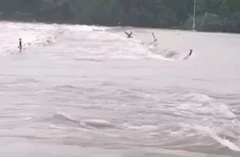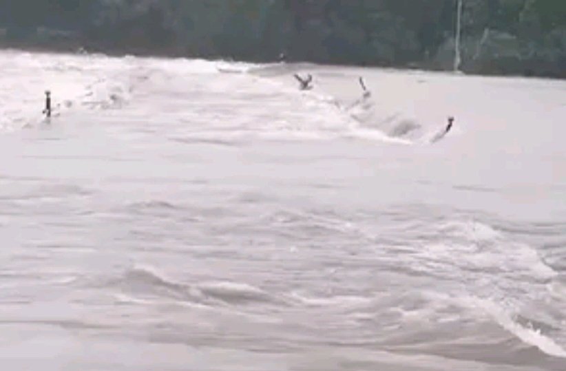 पनवेल | गेल्या तीन-चार दिवसांपासून कोसळत असलेल्या मुसळधार पावसामुळे पनवेल परिसरातील गाढी नदीला महापूर आला आहे. नदी दुथडी भरून वाहत असून चिपळे येथील पुलाखालून प्रचंड प्रमाणात पाणी जात आहे. तसेच नांदगाव येथील पुलावरूनसुद्धा पाणी वाहू लागल्याने परिसरातील नागरिकांमध्ये भीतीचे वातावरण आहे.