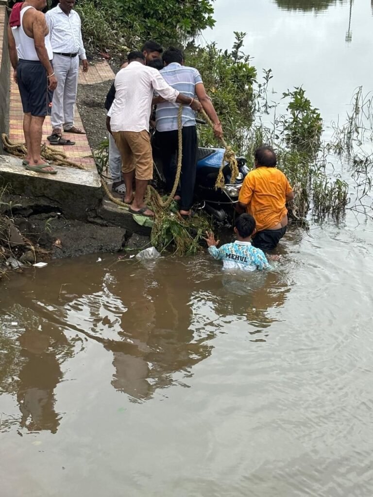 पनवेल जवळील भिंगारी येथे कांदेवाडी या ठिकाणी राहणार्या एका डबेवाल्यांची दुचाकी गाडी ज्याची किंमत जवळपास 1 लाख 40 हजार रुपये इतकी आहे ती अज्ञात चोरट्याने चोरली. ही चोरी त्या भागातील सीसीटीव्हीमध्ये दिसून आली आहे. त्यानंतर सदर गाडी ही गावाजवळील नदीमध्ये टाकून दिल्याचे आढळून आले आहे. ग्रामस्थांनी त्वरित तेथे धाव घेवून सदर गाडी पाण्यातून बाहेर काढली आहे. आता अज्ञात चोरट्याचा शोध ग्रामस्थ करीत आहेत.