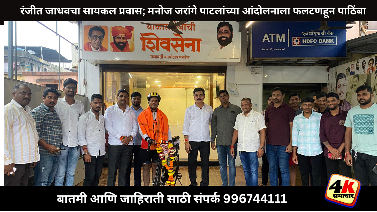 फलटण तालुक्यातील वडगाव गावचा रहिवासी रंजीत जाधव याने सायकलवरून तब्बल 230 किमीचा प्रवास करत कळंबोलीपर्यंत मजल मारली. या प्रवासादरम्यान समाजातील अनेक ठिकाणी त्याला उत्स्फूर्त प्रतिसाद मिळाला. त्याचे मनोबल वाढविण्यासाठी स्थानिक कार्यकर्त्यांनी ठिकठिकाणी स्वागतही केले. रंजीत जाधव पहाटे मनोज जरांगे पाटील यांच्या वाहन ताफ्यासह मुंबईतील आझाद मैदान गाठणार आहे. मराठा आरक्षणाच्या मागणीसाठी उद्यापासून मनोज जरांगे पाटील आमरण उपोषणाला बसणार असून, त्यांना पाठिंबा देण्यासाठी महाराष्ट्राच्या कानाकोपऱ्यातून समाजबांधव आणि नागरिक मोठ्या संख्येने मुंबईत दाखल होत आहेत.