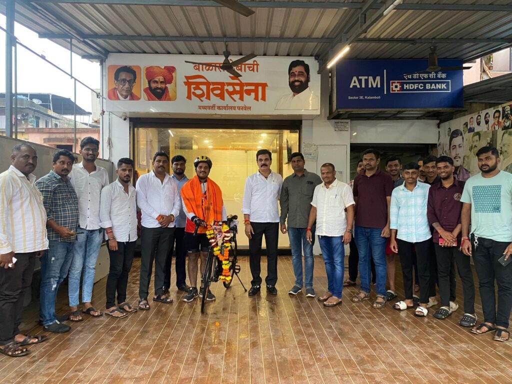 मराठा आरक्षणाच्या समर्थनार्थ सायकलवरून वडगाव, फलटण (जि. सातारा) येथून निघालेला तरुण रंजीत जाधव अखेर मुंबईत दाखल झाला आहे. या प्रवासात कळंबोली येथे मुक्कामादरम्यान सकल मराठा समाज कळंबोलीचे अध्यक्ष रामदास शेवाळे व शिवसेना शहरप्रमुख तुकाराम सरक यांनी त्याचा शाल, श्रीफळ देऊन सत्कार केला. यावेळी रामदास शेवाळे प्रतिष्ठानचे अध्यक्ष श्रीकांत फाळके, निलेश दिसले, महेश गोडसे सूर्यकांत, राहुल ढेंबरे, प्रेम गोडसे उपस्थित होते. मराठा आरक्षणाच्या चळवळीस दिलेल्या पाठिंब्याबद्दल उपस्थितांनी रंजीतचे कौतुक केले.
