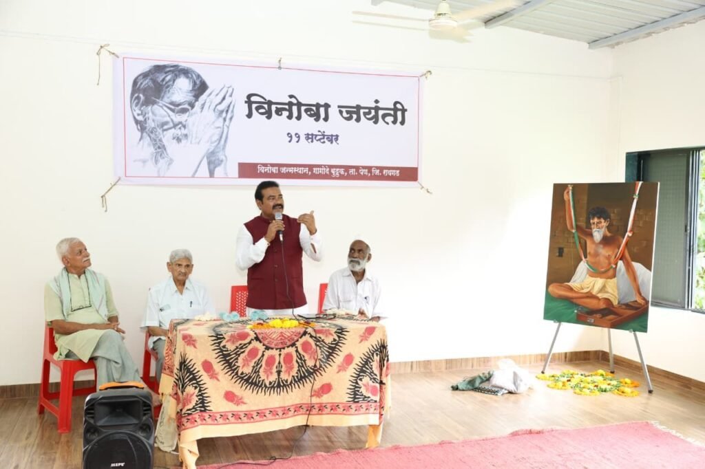 यावेळी महेंद्रशेठ घरत म्हणाले, ”विनोबा भावे महान होते. त्यांनी जगाला आदर्शवत अशी भूदान चळवळ राबवली. ज्यांना जमिनी नाहीत त्यांना विनोबा भावे यांनी सावकारांकडून जमिनी घेऊन त्या भूमिहीनांना दान केल्या. त्यांची ही भूमिका जगावेगळी आहे. विनोबा भावे आणि कर्मवीर भाऊराव पाटील यांचा आदर्श मी घेतला. आपल्या ताटातील अर्धी भाकरी दुसऱ्याला देण्याचा. त्यामुळेच स्वत:च्या कमाईतील ४० टक्के कमाई गोरगरिबांवर मी खर्च करतोय. अनेक विद्यार्थ्यांना दत्तक घेऊन शिक्षण आणि नोकरीही दिली. गरिबांच्या घरांना मदत, अनेकांना घरे, गाड्या दिल्यात. हीच दातृत्वाची भावना घेऊन यापुढेही असेच आयुष्य जगणार आहे. ”