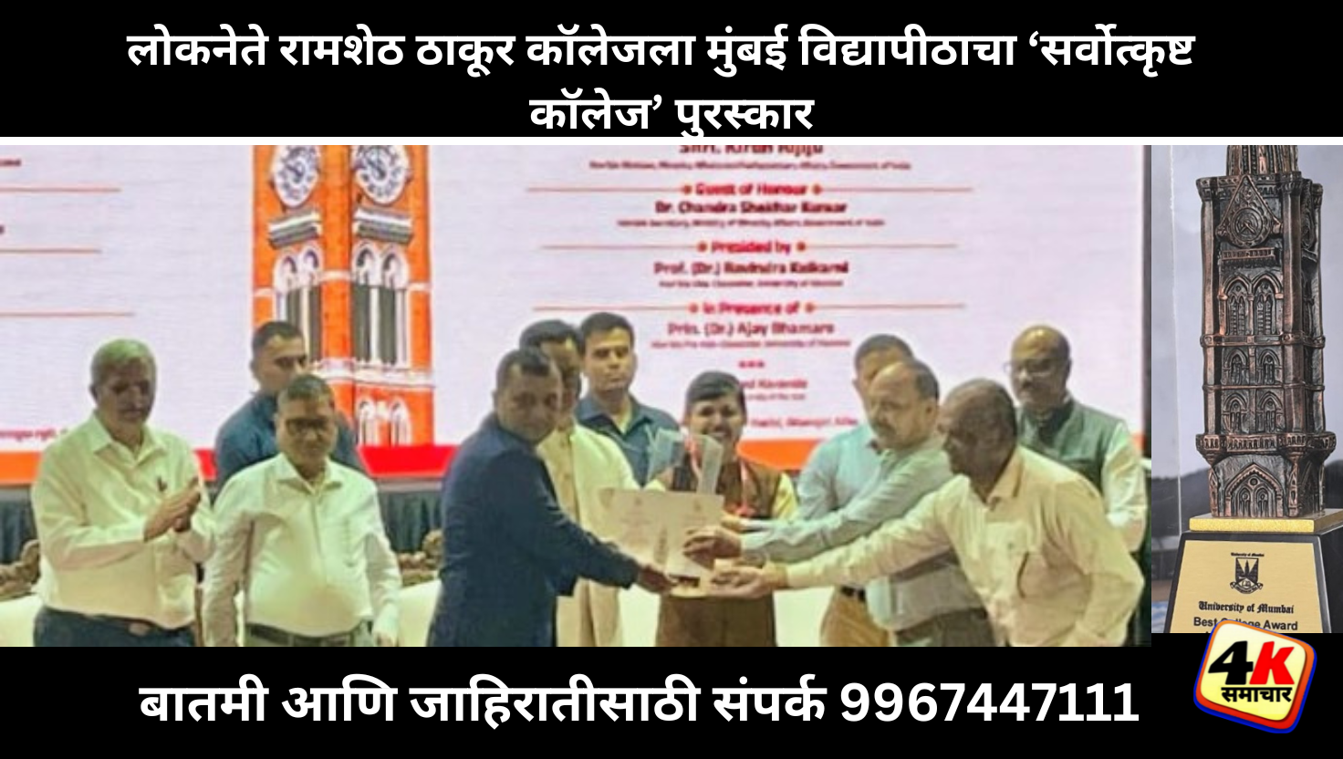 लोकनेते रामशेठ ठाकूर कॉलेजला मुंबई विद्यापीठाचा ‘सर्वोत्कृष्ट कॉलेज’ पुरस्कार