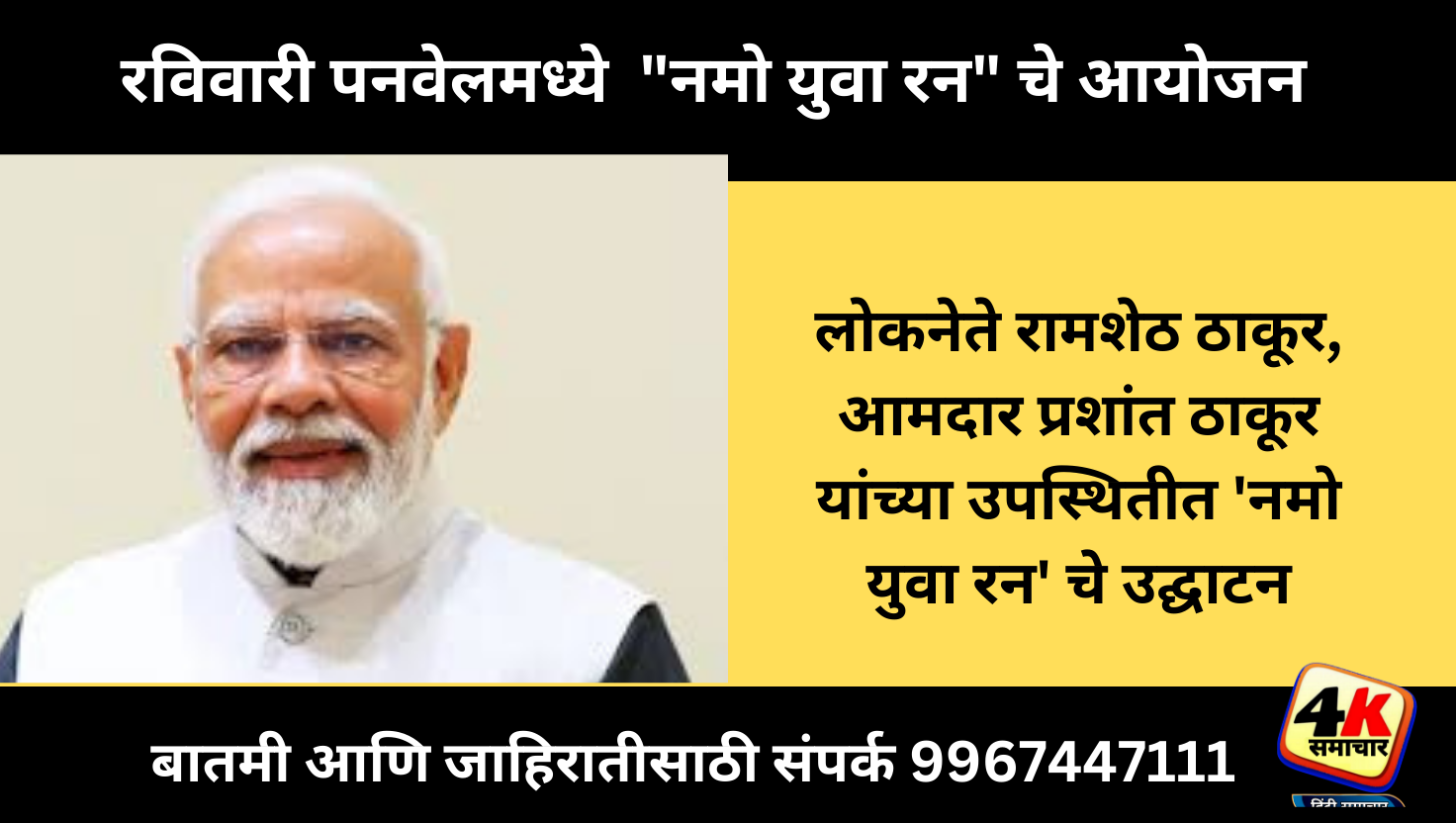 पनवेल (प्रतिनिधी) लोकप्रिय पंतप्रधान नरेंद्र मोदी यांच्या ७५ व्या वाढदिवसानिमित्त भारतीय जनता युवा मोर्चा उत्तर रायगड जिल्ह्याच्या वतीने रविवार दिनांक २१ सप्टेंबर रोजी सकाळी ०६ वाजता पनवेल मधील वडाळे तलाव येथे ‘स्वस्थ आणि नशा मुक्त भारताच्या निर्मितीसाठी’ या शीर्षकाखाली “नमो युवा रन” चे आयोजन करण्यात आले आहे.