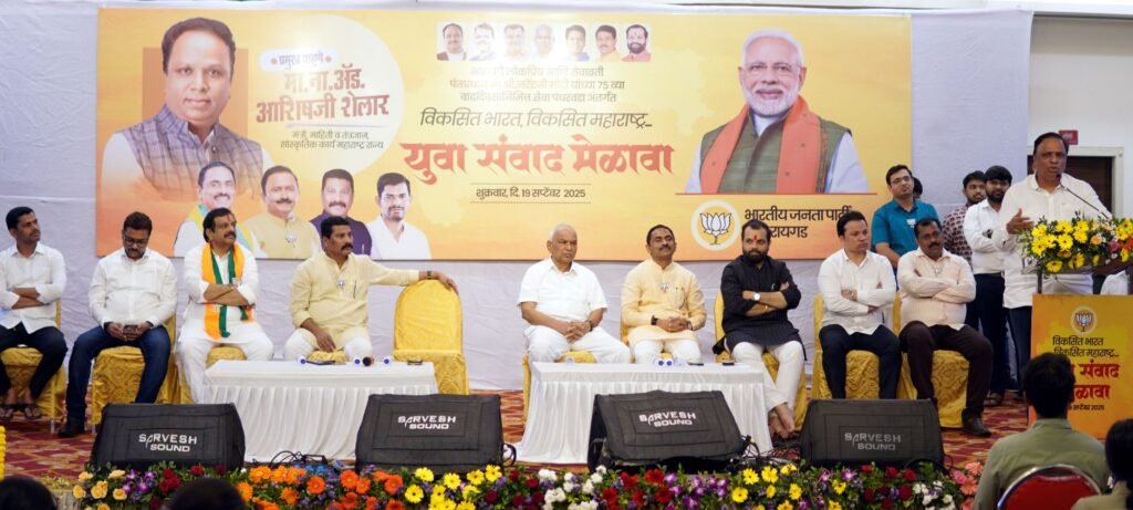 देशाचे कणखर नेतृत्व पंतप्रधान नरेंद्र मोदी यांच्या वाढदिवसानिमित्त दिनांक १७ सप्टेंबर ते ०२ ऑक्टोबर पर्यंत सेवा पंधरवडा आयोजित करण्यात आला असून या माध्यमातून विविध समाजोपयोगी उपक्रमांचे मोठ्या प्रमाणात आयोजन करण्यात आले आहे. त्या अंतर्गत युवकांच्या पुढील वाटचालीकरिता ‘विकसित भारत विकसित महाराष्ट्र’ या शिर्षकाखाली पनवेल शहरातील विरुपाक्ष मंगल कार्यालयात उत्तर रायगड जिल्हा भारतीय जनता पार्टीच्या वतीने ‘युवा संवाद मेळावा’ हजारो युवकांच्या उपस्थितीत आणि मोठ्या उत्साहात पार पडला. या मेळाव्याचे प्रमुख पाहुणे म्हणून राज्याचे माहिती व तंत्रज्ञान, सांस्कृतिक कार्य मंत्री अॅड.आशिष शेलार यांनी युवकांशी थेट संवाद साधला.
