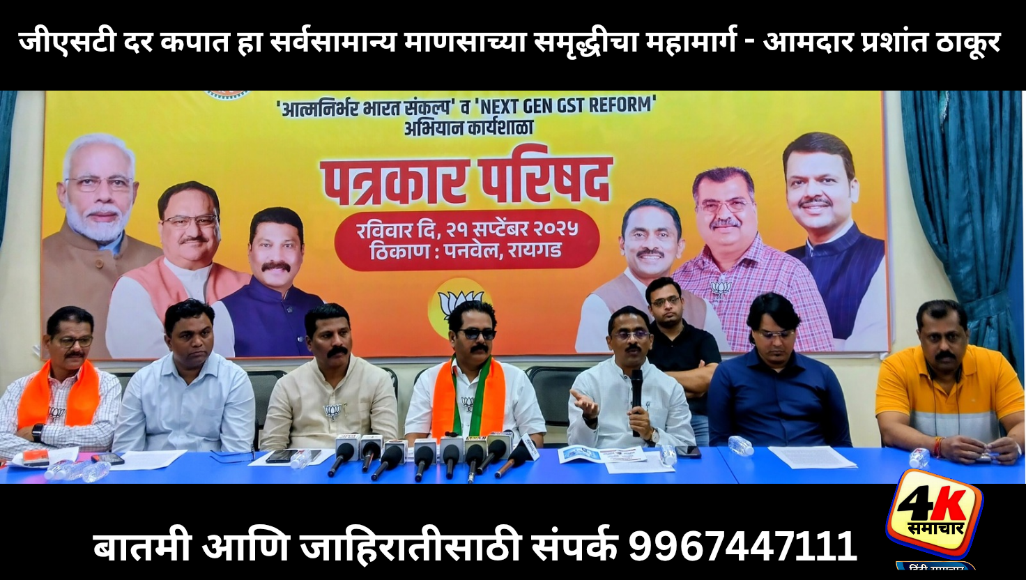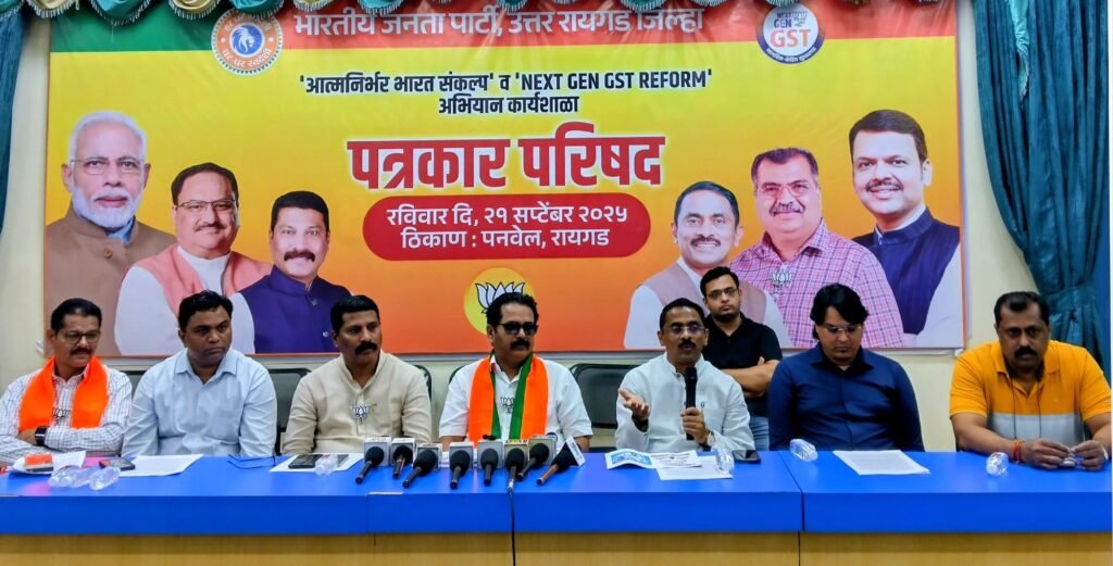मार्केट यार्ड येथे आमदार प्रशांत ठाकूर व भाजपचे जिल्हाध्यक्ष अविनाश कोळी यांच्या प्रमुख उपस्थितीत झालेल्या या पत्रकार परिषदेला भाजपचे उत्तर रायगड जिल्हा सरचिटणीस नितीन पाटील, आत्मनिर्भर भारत संकल्प व नेक्स्ट जेन जीएसटी रिफॉर्म २. ० चे रायगड जिल्हा संयोजक अॅड. नरेश ठाकूर, सुशील शर्मा, विठ्ठल मोरे, सांस्कृतिक सेलचे जिल्हाध्यक्ष अभिषेक पटवर्धन आदी उपस्थित होते.
