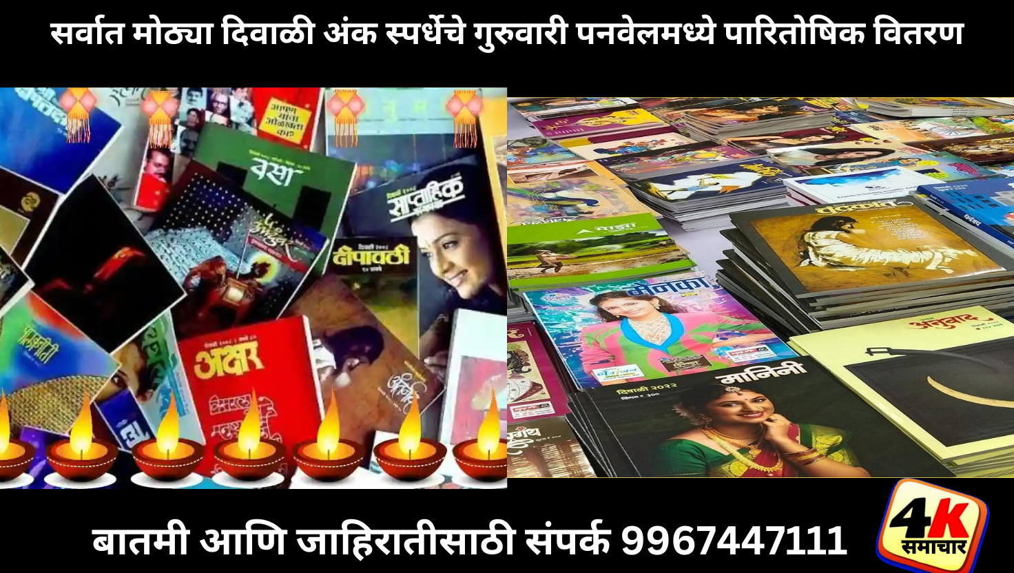 पनवेल (प्रतिनिधी) सामाजिक, शैक्षणिक, कला, क्रीडा, सांस्कृतिक अशा विविध समाजोपयोगी क्षेत्रांमध्ये उल्लेखनीय कामगिरी बजावणारे श्री. रामशेठ ठाकूर सामाजिक विकास मंडळ आणि मुंबई मराठी पत्रकार संघ यांच्या संयुक्त विद्यमाने आयोजित २४ व्या राज्यस्तरीय व रायगड जिल्हास्तरीय दिवाळी अंक स्पर्धेचा पारितोषिक वितरण सोहळा गुरुवार दिनांक २५ सप्टेंबर रोजी दुपारी ०३ वाजता पनवेल येथील आद्य क्रांतिवीर वासुदेव बळवंत फडके नाट्यगृहात होणार आहे. या वेळी राज्याचे सांस्कृतिक मंत्री अॅड. आशिष शेलार यांच्या हस्ते विजेत्या दिवाळी अंकांना पारिताषिके प्रदान करण्यात येणार आहेत.