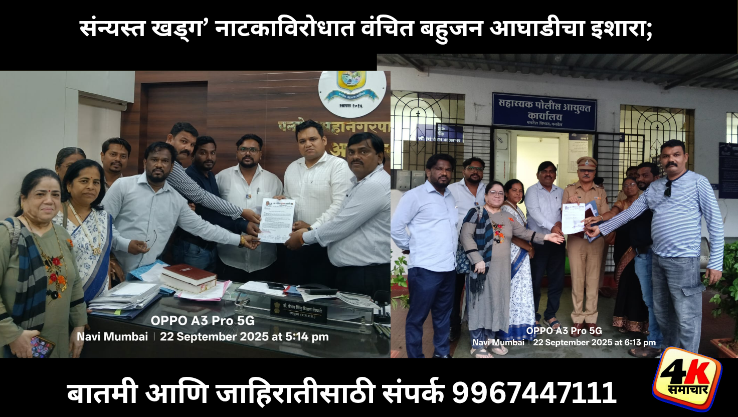 पनवेल/रायगड (प्रतिनिधी) – वि. दा. सावरकर लिखित ‘संन्यस्त खड्ग’ या नाटकाच्या प्रयोगाविरोधात वंचित बहुजन आघाडीने पुन्हा एकदा तीव्र भूमिका घेतली आहे. २७ सप्टेंबर २०२५ रोजी पनवेल येथील वासुदेव बळवंत फडके सभागृहात हा प्रयोग होणार आहे. तथागत गौतम बुद्ध यांच्या विरोधात आक्षेपार्ह मजकूर असल्याचा आरोप करीत या नाटकाला विरोध दर्शविण्यात आला आहे.