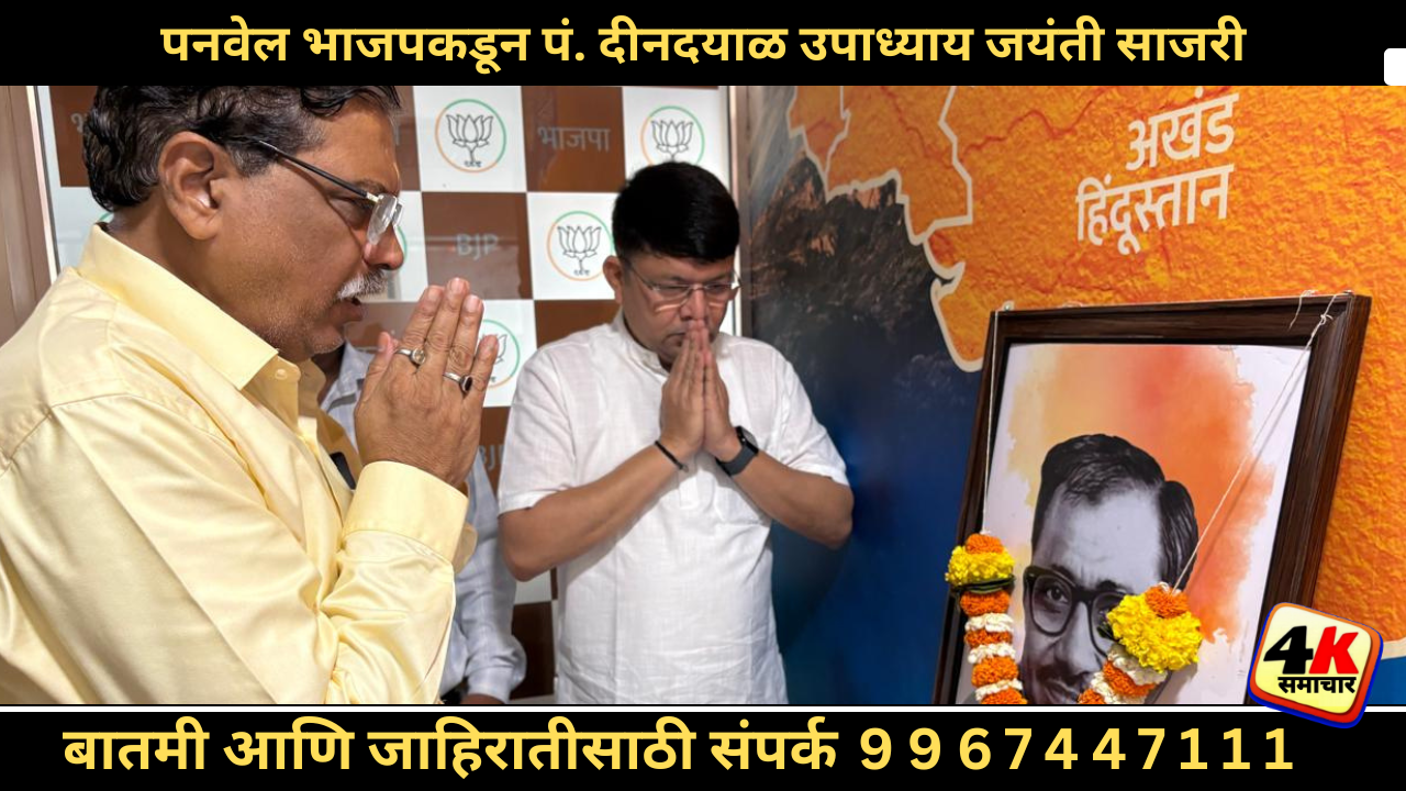 एकात्मता, मानवतावाद आणि अंत्योदयाचे प्रणेते, प्रखर राष्ट्रप्रेमी पंडित दीनदयाळ उपाध्याय यांची जयंती पनवेल तालुका व शहर भाजपच्या मध्यवर्ती कार्यालयात साजरी करण्यात आली.