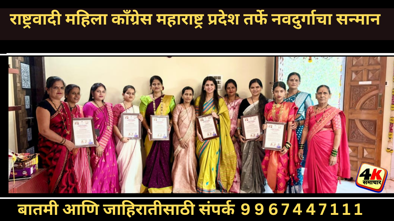 .या उपक्रमाला राष्ट्रवादी काँग्रेस पार्टीचे रायगड जिल्हा सरचिटणीस प्रवीण राम ठाकूर, उरण विधानसभा अध्यक्ष वैजनाथ ठाकूर, उरण तालुका महिला अध्यक्ष कुंदा ठाकूर यांच्यासह पार्टीचे पदाधिकारी उपस्थित होते.राष्ट्रवादी काँग्रेस महिला काँग्रेसच्या प्रदेशाध्यक्ष रुपालीताई चाकणकर यांनी दिलेल्या आदेशानुसार उरण तालुक्यातील नवदुर्गाचं सत्कार सन्मान करण्यात आला असून उरण तालुक्यातील विविध क्षेत्रातील महिलांना गौरविण्यात आल्याची माहिती कुंदा ठाकूर यांनी दिली.चांगल्या उपक्रमाचे आयोजन केल्याने विविध सामाजिक संस्था संघटना, नवरात्रौत्सव मंडळाच्या पदाधिकारी सदस्यांनी सदर उपक्रमाचे कौतुक करत राष्ट्रवादी काँग्रेस पार्टीच्या राष्ट्रवादी महिला काँग्रेस महाराष्ट्र प्रदेश व उरण तालुका राष्ट्रवादी काँग्रेस पार्टीच्या सर्व पदाधिकारी कार्यकर्त्यांचे आभार मानले आहेत.