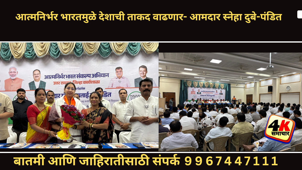 पनवेल (प्रतिनिधी) आत्मनिर्भर भारतमुळे देशाची ताकद वाढणार असून त्या जोरावर आपला भारत विकसित देशांच्या यादीत सामील होईल, असे प्रतिपादन आत्मनिर्भर भारत संकल्प अभियानाच्या प्रदेश सहसंयोजिका वसई मतदार संघाच्या आमदार स्नेहा दुबे-पंडित यांनी आज (दि. ०३) येथे केले. भारतीय जनता पार्टीच्या वतीने आत्मनिर्भर भारत संकल्प अभियान २५ सप्टेंबर ते २५ डिसेंबर दरम्यान राबविण्यात येणार आहे. त्या संदर्भातील उत्तर रायगड जिल्हा कार्यशाळा आमदार स्नेहा दुबे – पंडित आणि भाजपचे ठाणे कोकण समन्वयक अभिजित पेडणेकर व भाजपचे जिल्हाध्यक्ष अविनाश कोळी यांच्या प्रमुख उपस्थितीत मार्केट यार्ड येथे पार पडली.