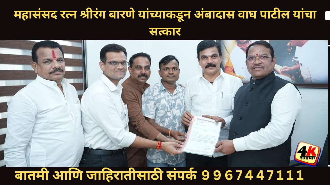 4k समाचार दि. 8 पनवेल (वार्ताहर): महासंसद रत्न खासदार श्रीरंग आप्पा बारणे यांनी नवनिर्वाचित शिवसेना ग्राहक तक्रार निवारण कक्ष तालुका प्रमुख अंबादास वाघ पाटील यांचे पनवेल येथील कार्यालयात अभिनंदन केले आहे.
