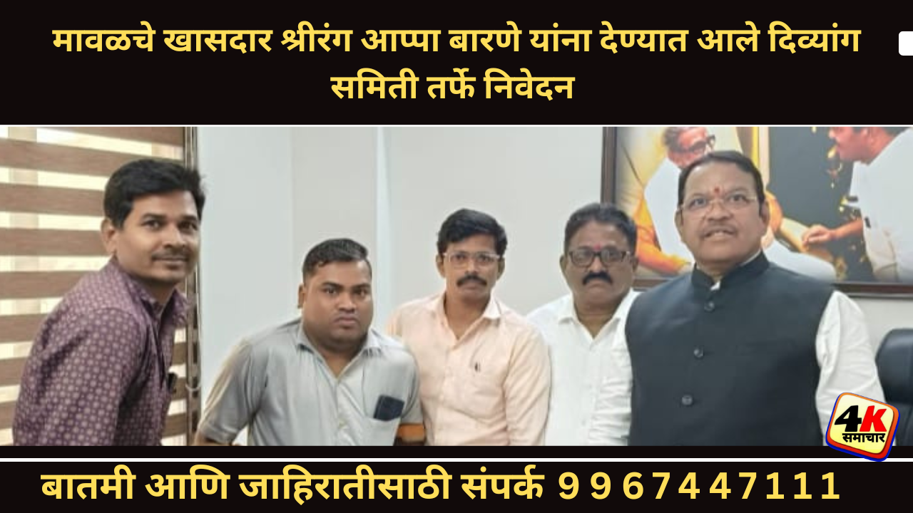 पनवेल दि.०8 (वार्ताहर): मावळचे खासदार श्रीरंग आप्पा बारणे यांना विविध मागण्यांसंदर्भात दिव्यांग समिती तर्फे निवेदन देण्यात आले.