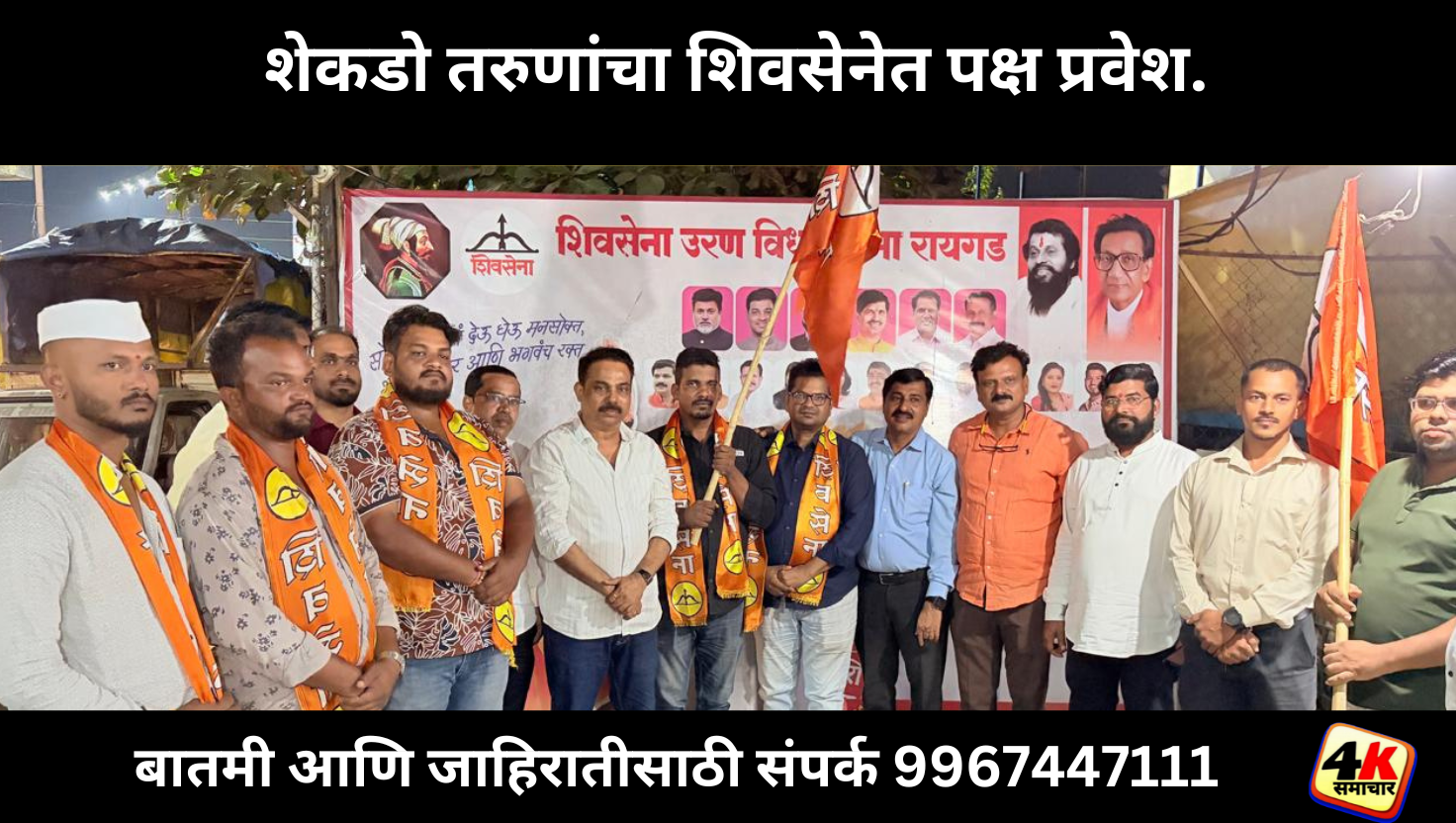 याप्रसंगी उरण विधानसभेचे रायगड जिल्हाप्रमुख अतुल शेठ भगत तसेच उरण तालुकाप्रमुख दीपक ठाकूर, विधानसभा संपर्कप्रमुख रमेश म्हात्रे, रायगड जिल्हा संघटक महेंद्र पाटील, तालुका संपर्कप्रमुख चंद्रकांत पाटील, उरण शहर प्रमुख सुलेमान शेख, चाणजे विभाग प्रमुख अक्षय म्हात्रे त्यांच्या समवेत अनेक पदाधिकारी व कार्यकर्ते उपस्थित होते.शिवसेना मध्यवर्ती कार्यालय उरण येथे झालेल्या शिवसेना पक्षप्रवेशांमध्ये रफिक रशीद शेख चारफाटा उरण,भारत शेंडगे चार फाटा,योगेश पाटील, विकी झुवाटकर, उस्मान खान,अशोक मोटे,आतिश झावरे,पंकेश पाटील, सुशांत पाटील, योगेश भोसले समीर केळकर आदीनी पक्ष प्रवेश केला.