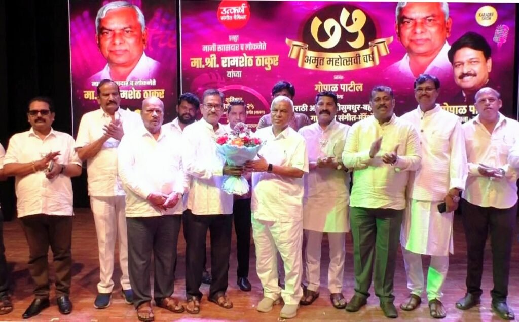 पनवेल (प्रतिनिधी) गोरगरिबांचे आधारस्तंभ, थोर दानशूर व्यक्तिमत्त्व आणि माजी खासदार लोकनेते रामशेठ ठाकूर यांच्या अमृत महोत्सवी वर्षानिमित्त आज पनवेलमध्ये ‘उत्कर्ष संगीत मैफिल’ तर्फे ‘संगीत मॅरेथॉन’चे आयोजन करण्यात आले. या विशेष उपक्रमात ७५ गायकांनी एकापाठोपाठ ७५ सुमधुर गाणी सादर करून लोकनेते रामशेठ ठाकूर यांच्या कार्याला स्वरबद्ध सलामी दिली.