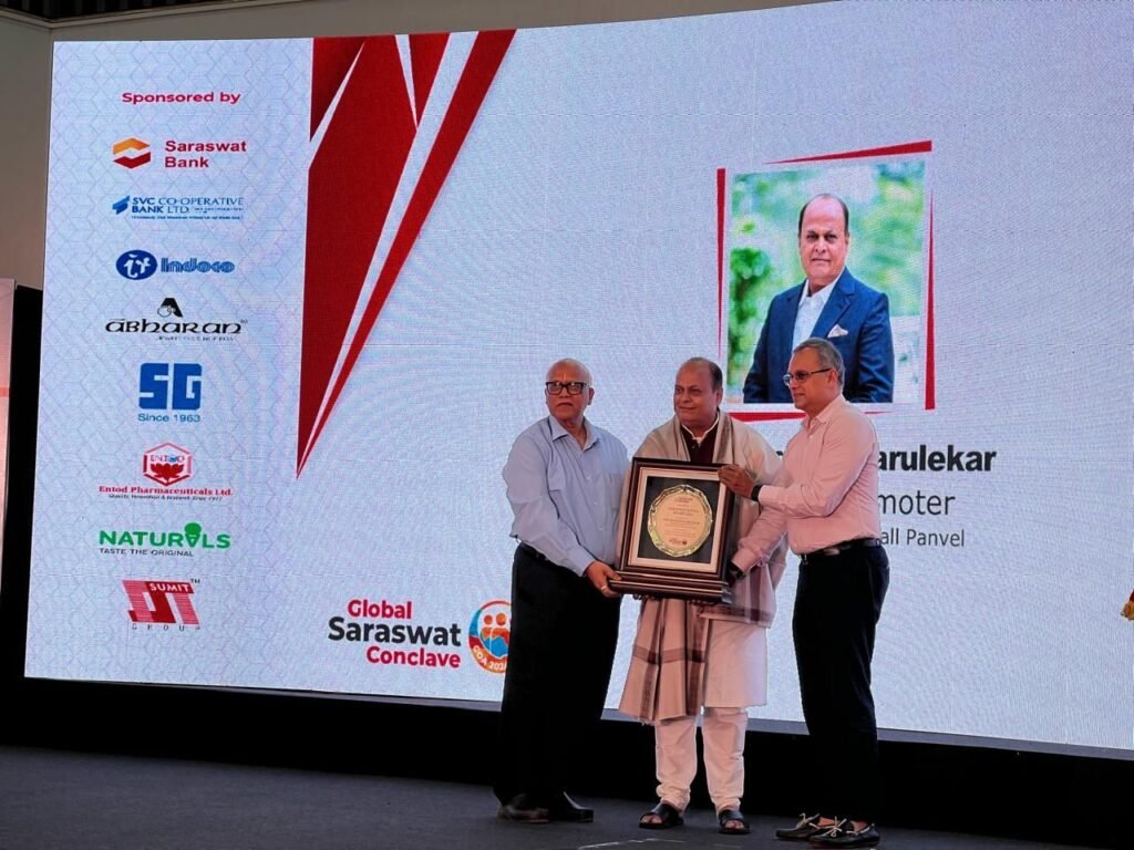 पनवेल दि.३० (वार्ताहर) : सारस्वत चेंबर्सचा २०२४ चा ‘सारस्वत रत्न’ पुरस्कार पनवेलमधील उद्योजक मंगेश परूळेकर यांना नुकताच देण्यात आला. गोव्याचे माजी मुख्यमंत्री दिगंबर कामत व डेंन्पो यांच्या हस्ते हा पुरस्कार परुळेकर यांना प्रदान करण्यात आला.