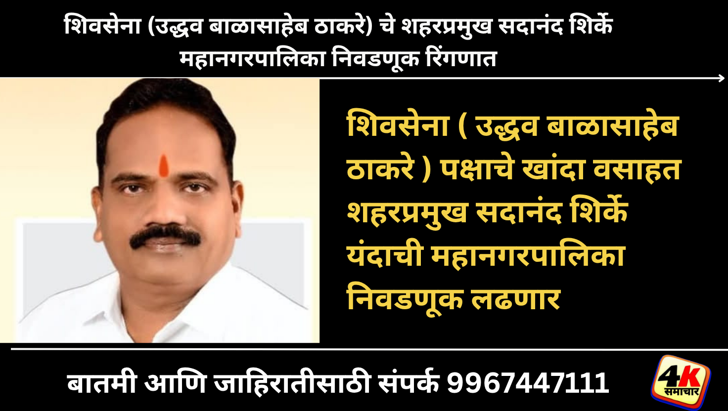 पनवेल, दि.15 (वार्ताहर) : गेल्या अनेक वर्षापासून खांदा वसाहत व परिसरात राजकीय तसेच सामाजिक क्षेत्रात भरीव कार्य करणारे शिवसेना ( उद्धव बाळासाहेब ठाकरे ) पक्षाचे खांदा वसाहत शहरप्रमुख सदानंद शिर्के यंदाची महानगरपालिका निवडणूक लढण्यासाठी सज्ज झाले आहेत .