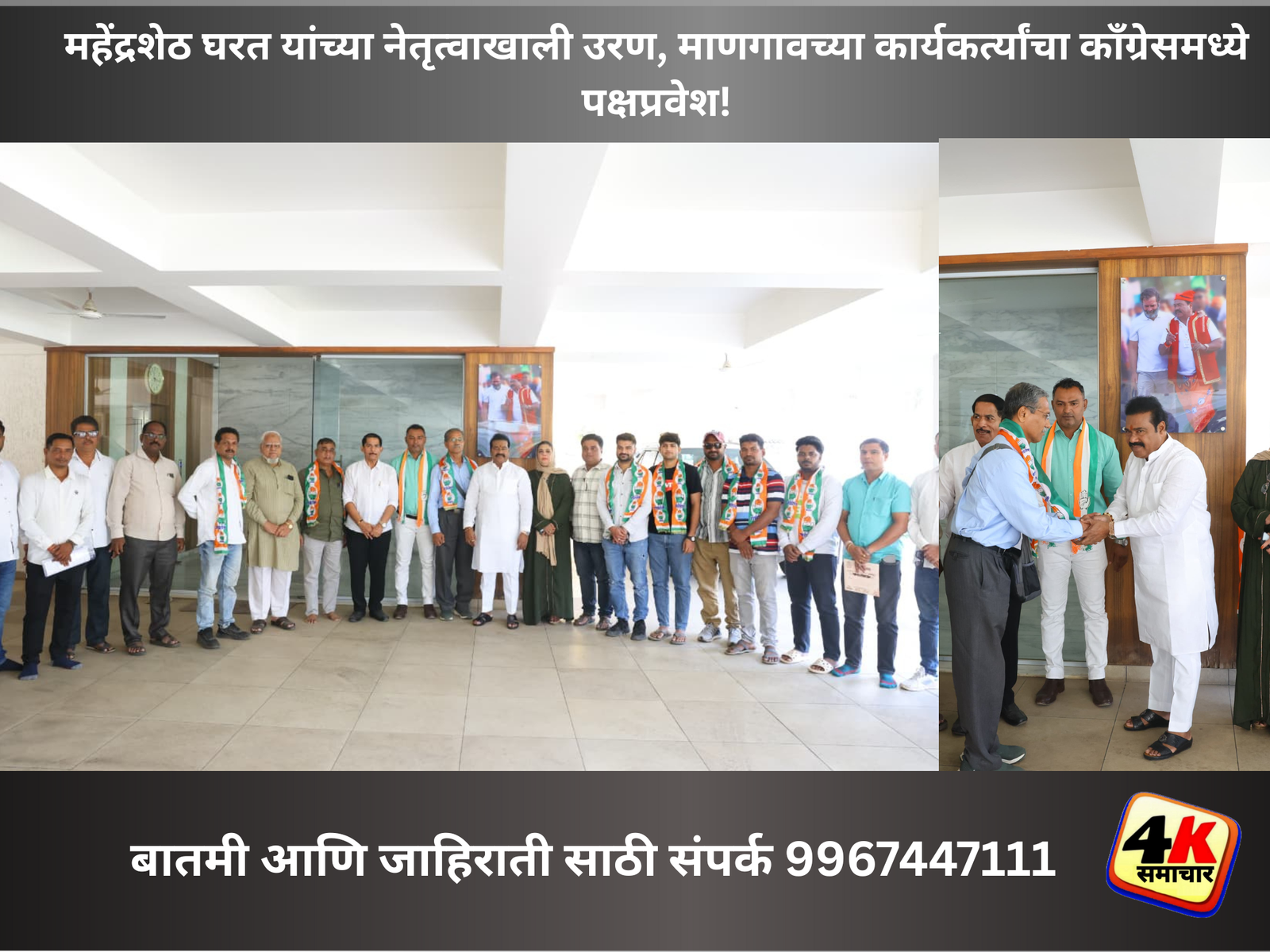शेलघर येथील ‘सुखकर्ता’ बंगल्यावर शुक्रवारी उरणचे शादाब शेख आणि माणगावचे सतीश टेंबे, तसेच अनेक कार्यकर्त्यांनी महेंद्रशेठ घरत यांच्या नेतृत्वाखाली कॉंग्रेसमध्ये पक्षप्रवेश केला. त्यांचे कॉंग्रेसचे जिल्हाध्यक्ष महेंद्रशेठ घरत यांनी स्वागत केले.यावेळी कॉंग्रेसचे प्रदेश सरचिटणीस मिलिंद पाडगावकर, अल्पसंख्यांक अध्यक्ष अखलाक शिलोत्री, उरण तालुका अध्यक्ष विनोद म्हात्रे, शहर अध्यक्ष गुफरान तुंगेकर,