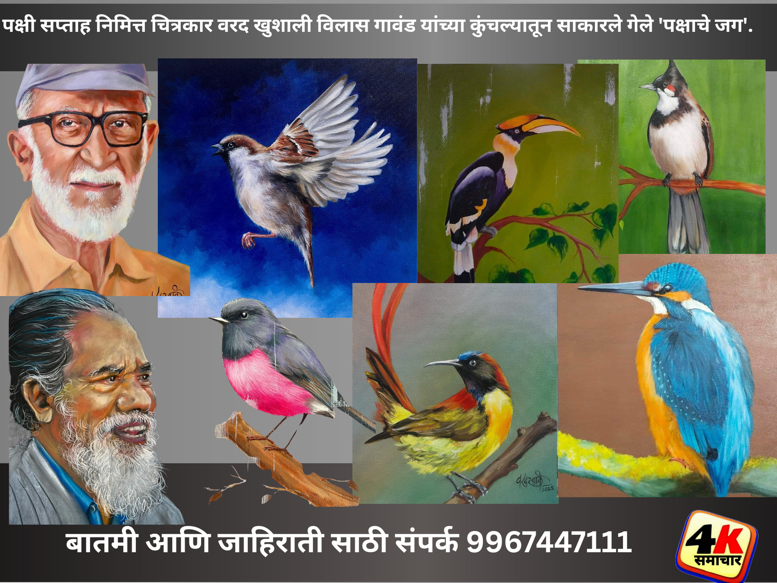 या पक्षी सप्ताहाच्या निमित्ताने फेसबुक व इंन्स्टाग्राम पेज वर तरुण आणि प्रतिभावान चित्रकार वरद खुशाली विलास गावंड यांनी काढलेली विविध पक्षांची चित्र ही निसर्गमित्र आणि निसर्ग संरक्षण व संवर्धन मोहिमेला चालना देणारी आहेत. तर या पक्षांचे जग उलगडून सांगणाऱ्या व ज्यांच्या जयंतीनिमित्त हा पक्षी सप्ताह साजरा केला जातो, ते प्रसिद्ध पक्षीतज्ज्ञ डॉ. सलीम अली आणि ज्येष्ठ निसर्ग लेखक मारुती चितमपल्ली यांच्या निसर्ग संवर्धनातील अमूल्य योगदानाला आदरांजली म्हणून, चित्रकार वरद यांनी या दोन महान व्यक्तिमत्त्वांची बोलकी चित्रे रेखाटली आहेत.