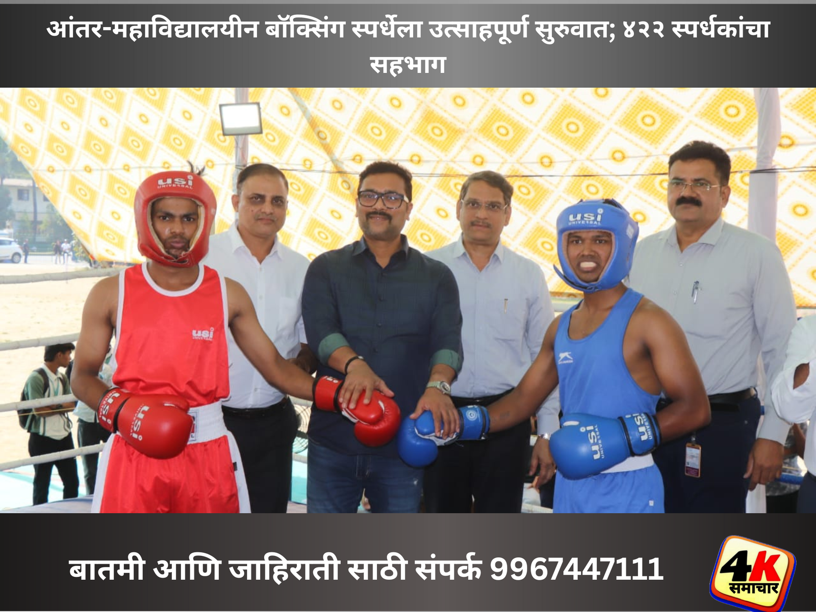 पनवेल (प्रतिनिधी) जनार्दन भगत शिक्षण प्रसारक संस्थेच्या सीकेटी महाविद्यालय आणि मुंबई विद्यापीठाच्या संयुक्त विद्यमाने आयोजित आंतर-महाविद्यालयीन बॉक्सिंग स्पर्धेला सोमवार, १७ नोव्हेंबर २०२५ रोजी उत्साहपूर्ण सुरुवात झाली. २२ नोव्हेंबर २०२५ पर्यंत चालणाऱ्या या स्पर्धेत मुंबई विद्यापीठाशी संलग्न महाविद्यालयांमधील तब्बल ४२२ स्पर्धक सहभागी झाले आहेत.